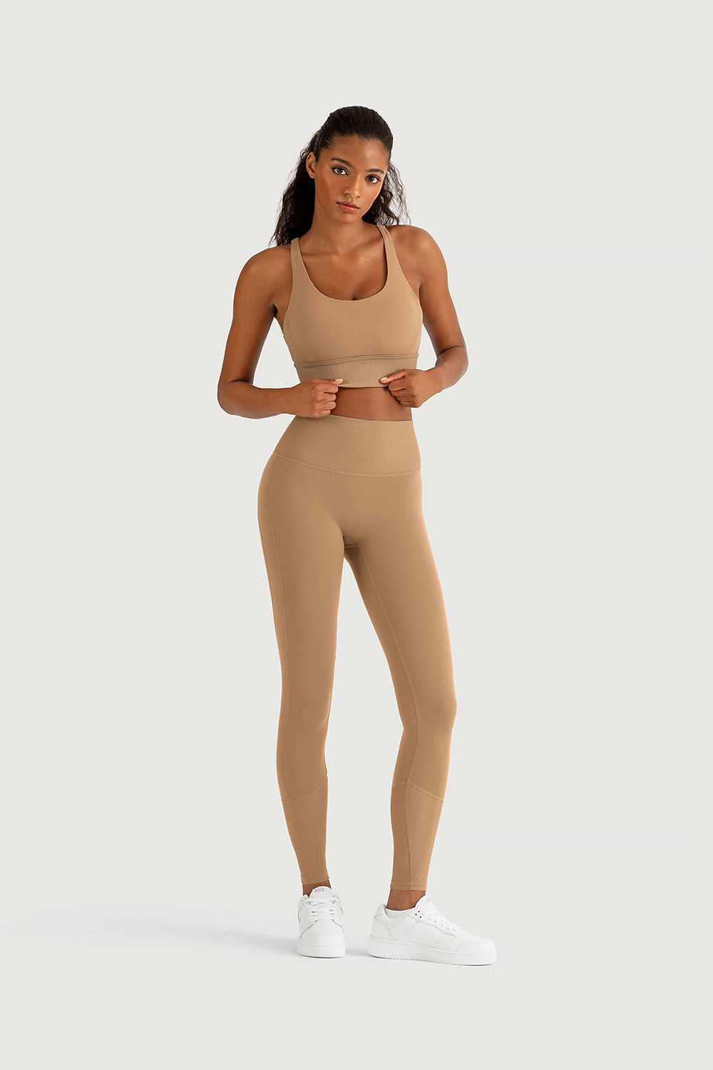 • High waist in contrast rib (75% Nylon, 25% Elastane)