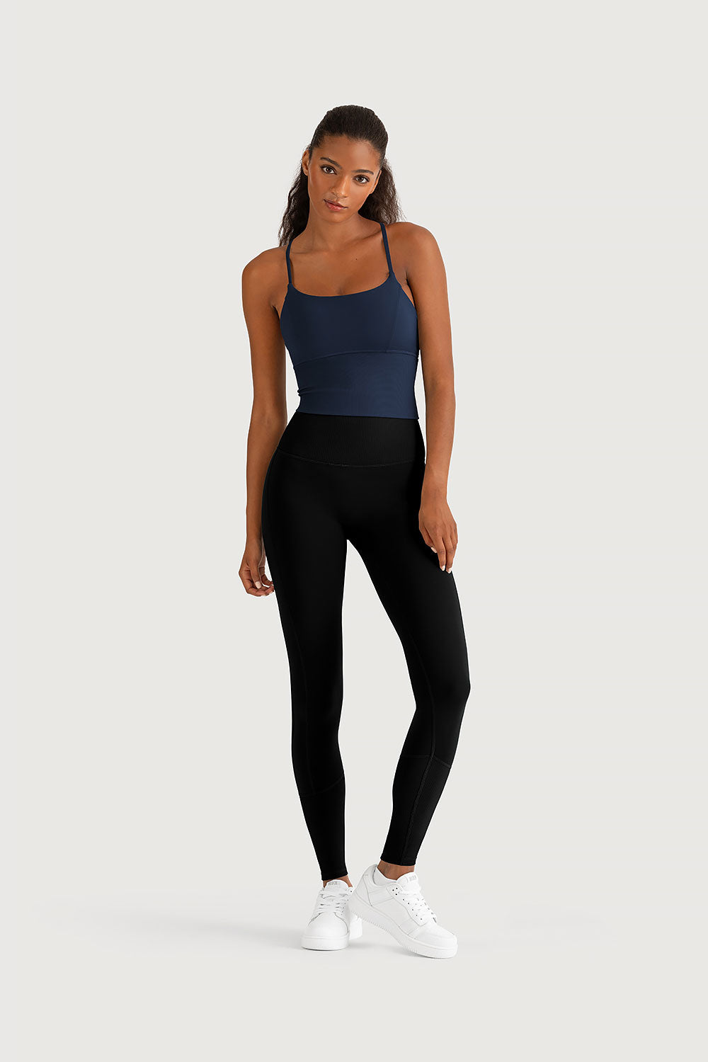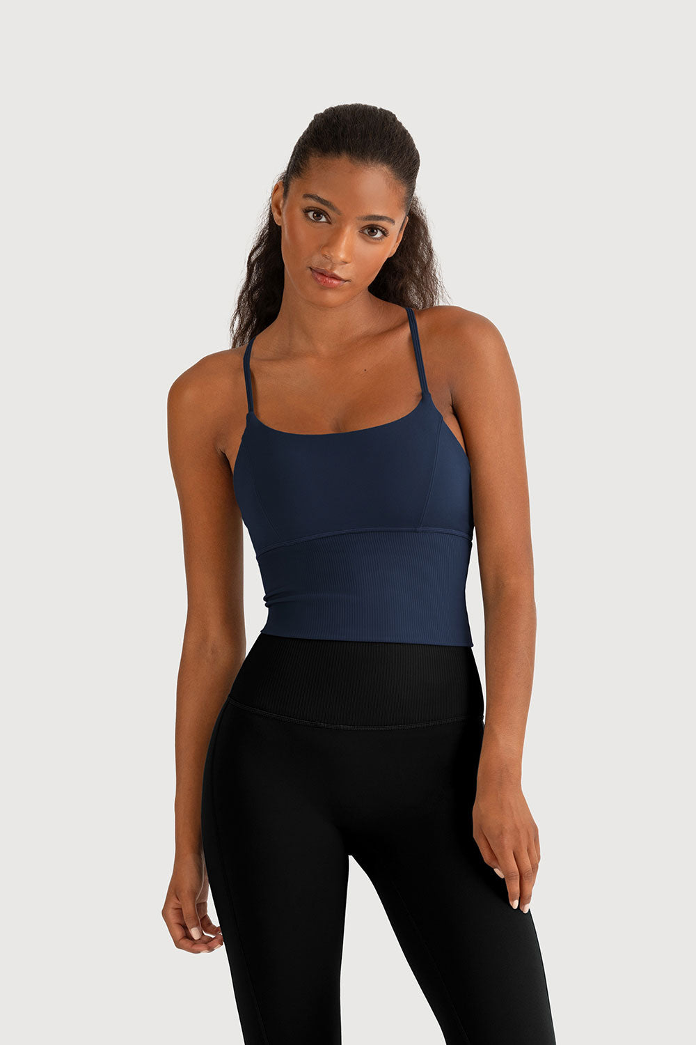 Sculpted, sleek, and made to move - the BLOCHeverhold™ Rise Top is your new studio-to-street essential. Designed in our signature BLOCHeverhold™ performance fabric, it delivers a supportive, second-skin fit with a flattering scoop neckline and camisole straps. Contour seam detailing across the bust enhances shape, while the contrast rib panel through the midsection cinches and defines for that confident, sculpted look. The multi-strap back design adds a trending edge and elevated finish.