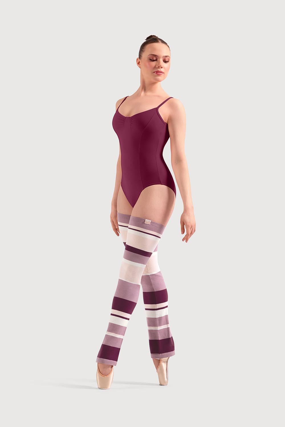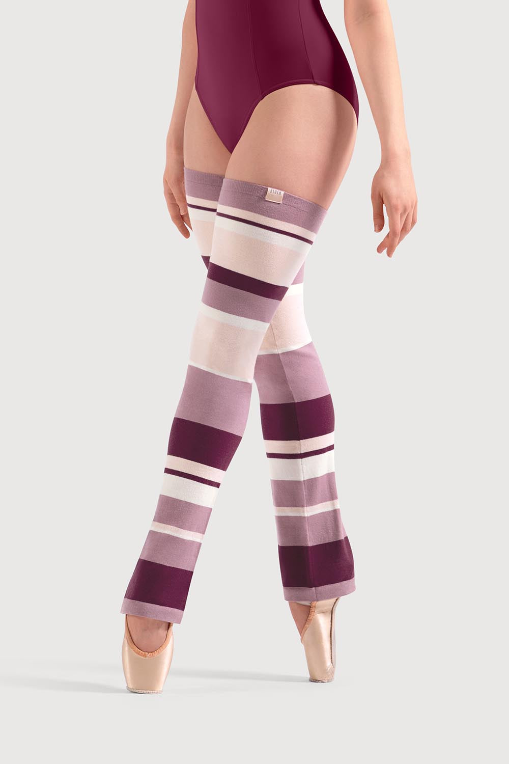 Add a pop of colour to your warm-up routine with these thigh-high striped legwarmers. Designed in a flattering bootcut shape, they’re perfect for layering over your dancewear before class or keeping muscles warm during barre work. The bold stripe block design brings a fun, fashion-forward edge to your studio look, where style meets performance.