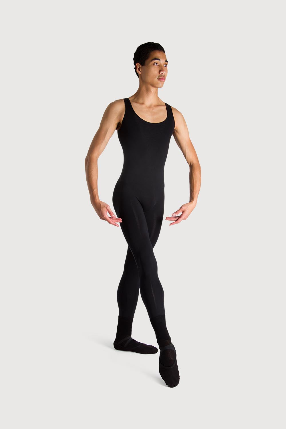 The Mark Unitard is a classical staple for male dancers, ideal for both class and examination wear. Designed with a scoop neckline and tank-style straps, it accentuates the masculine physique while providing a comfortable fit. The full-length leg finishes just above the ankle, allowing for a clean, streamlined look. Pair it with socks and ballet shoes for a traditional, polished appearance.
