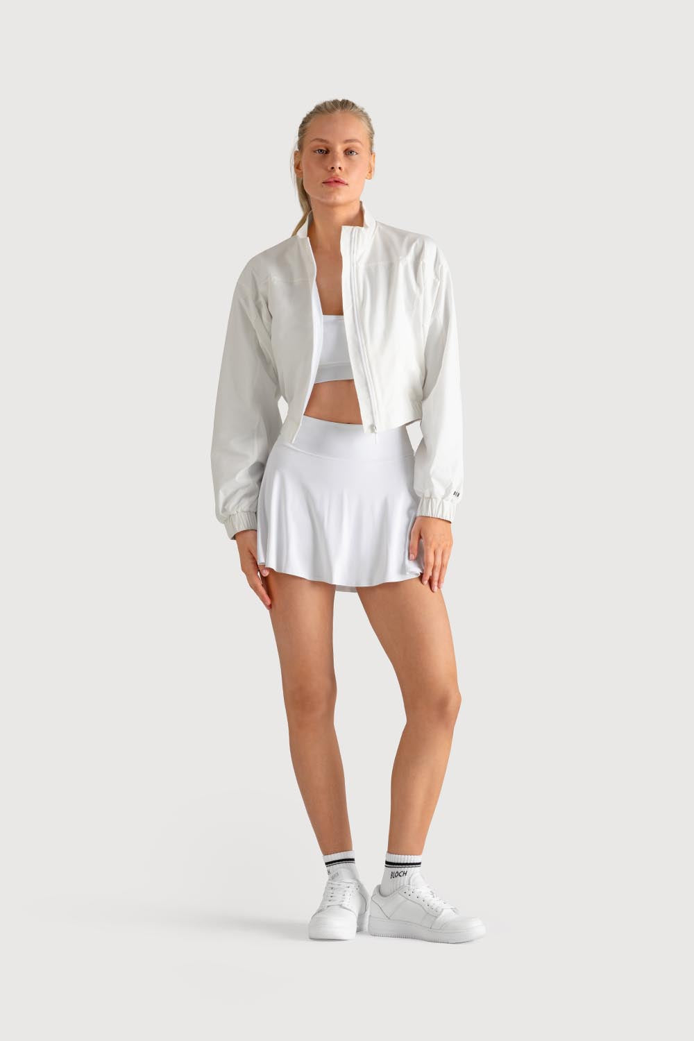 Where function meets style, the Bomber Jacket is designed using an all-weather fabric to keep with every season. With a slightly cropped fit, the internal mesh lining gives stretch and breathability, with a back split for a superior fit and added airflow. Long sleeves with elasticated cuffs and a zip-through funnel neck gives you protection against the elements, all whilst serving an on-trend look. Finished with contour panelling and a concealed inner pocket, making this the perfect layer to your active look.