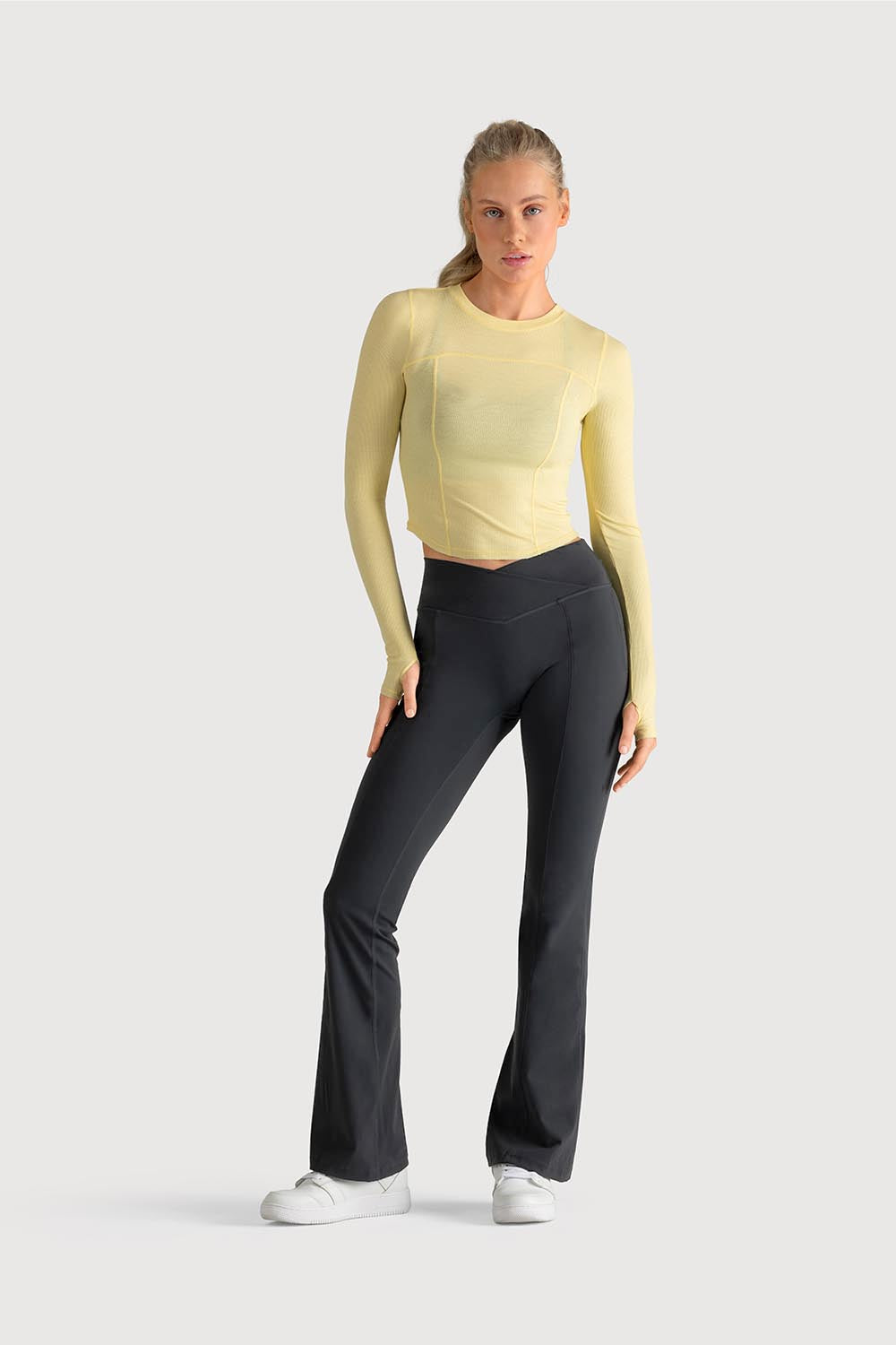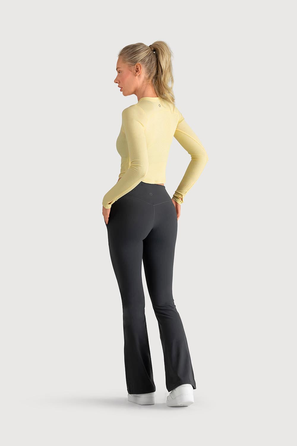 The BLOCHeverhold™ V Shape Flare Tight is the ultimate blend of function and fashion, crafted in our buttery-soft performance fabric with an on-trend kick flare hem. A supportive double-layer crossover waistband provides a secure, no-dig fit, while mesh-lined dual side pockets add everyday practicality. Contour seams and a V-shaped back detail flatter the glutes, and the smooth no-front-seam finish ensures total confidence. Finished with a front pintuck detail, this elevated design takes you seamlessly from studio to street. The regular length has an inner leg measurement of 81.5cm.