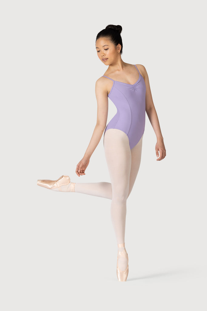 Introducing the Oriana leotard from the Overture Collection, a classical style leotard with a thin camisole strap which is continuous for a smooth and seamless fit around the arm. A front V neckline is shaped with a gathered front, paired with a French princess bodice line for a flattering silhouette.