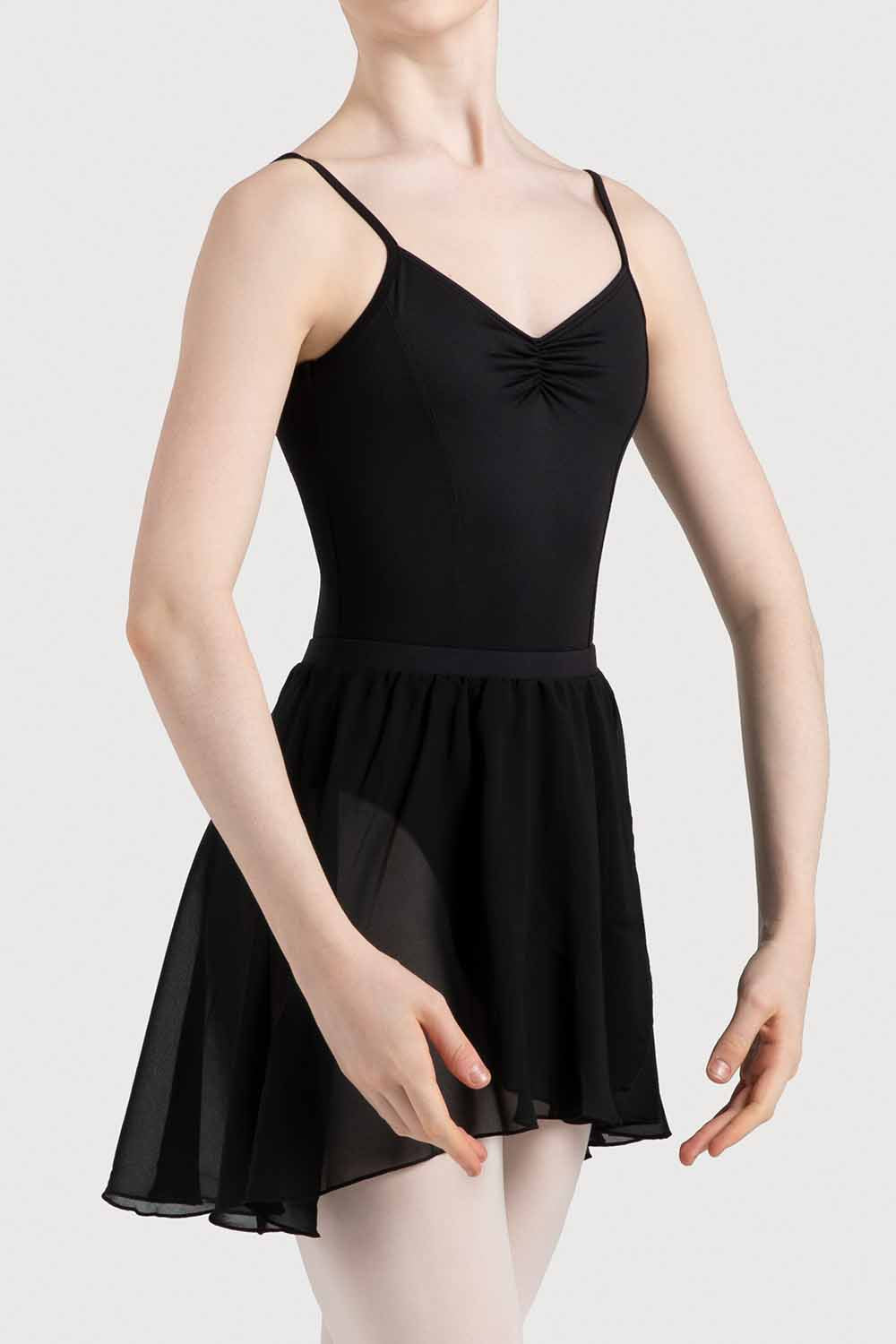 The Chezanne is a classical style skirt featuring a full circle design and mock wrap front. Crafted on an elasticated waistband for easy wear, with luxuriously soft chiffon that falls to the upper thigh.
