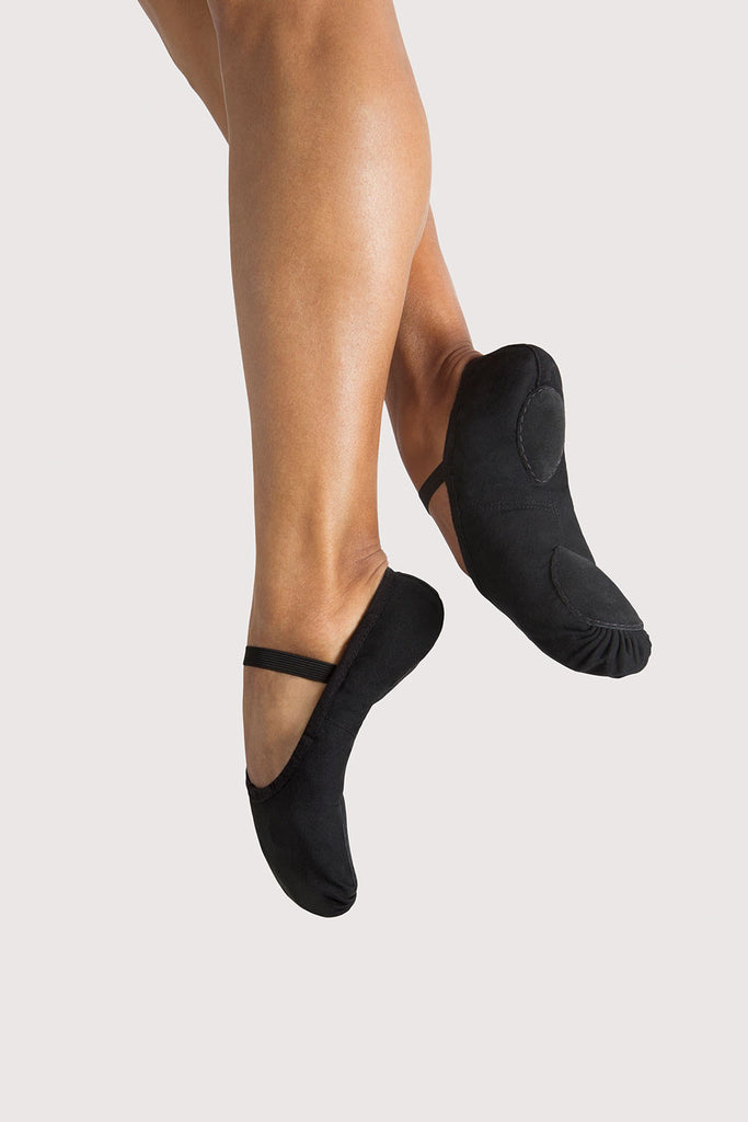 Original Bloch canvas split sole that hugs the arch when pointing. The soft but durable canvas upper minimises ridges under the metatarsals and oval split sole pads create extra support.