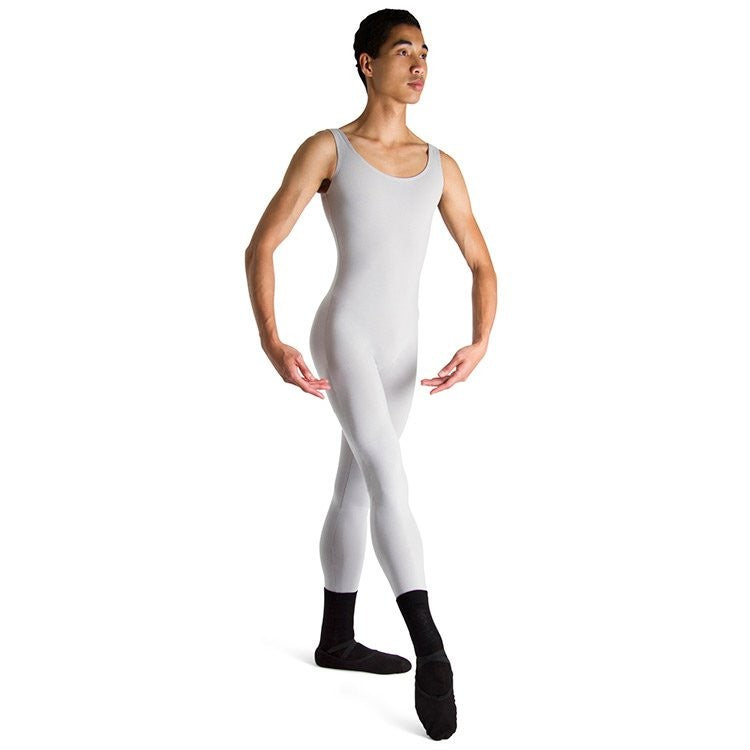 The Mark Unitard is a classical staple for male dancers, ideal for both class and examination wear. Designed with a scoop neckline and tank-style straps, it accentuates the masculine physique while providing a comfortable fit. The full-length leg finishes just above the ankle, allowing for a clean, streamlined look. Pair it with socks and ballet shoes for a traditional, polished appearance.