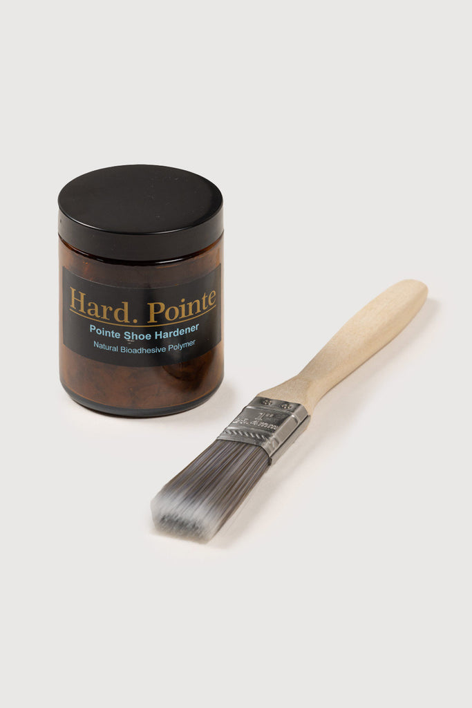 Hard. Pointe has been carefully developed with guidance from professional ballerinas and has sourced a brush that fits perfectly inside all pointe shoes. Each jar has enough product for use on multiple pairs of pointe shoes which enables ballerinas to use Hard. Pointe as generously, or as sparingly as they need to get the most out of their pointe shoes. The inspiration for this product is to help make pointe shoe training more affordable and cost-effective.