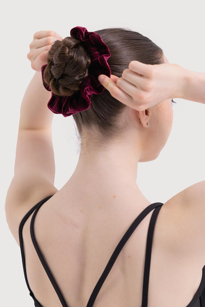 Our luxe scrunchies are the perfect way to achieve a quick up-do with effortless style. Crafted in a super-soft, velvet fabric that will hold your locks in place. The scrunchie can be placed around a bun or wrapped multiple times around a ponytail depending on the thickness of the hair.
