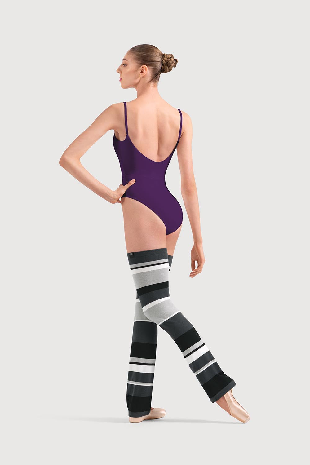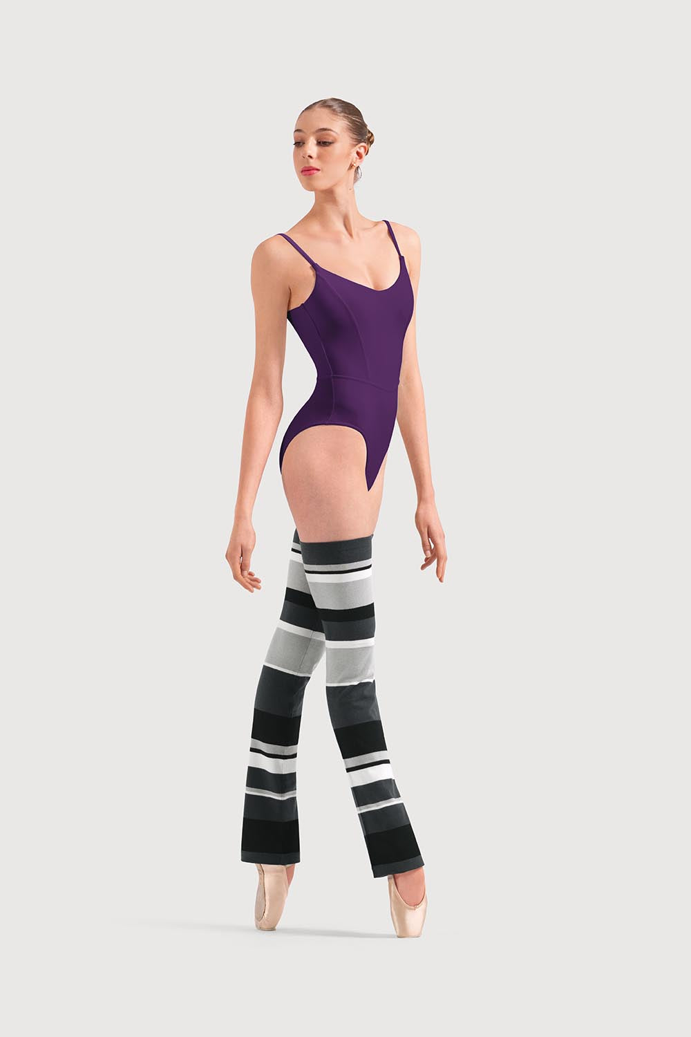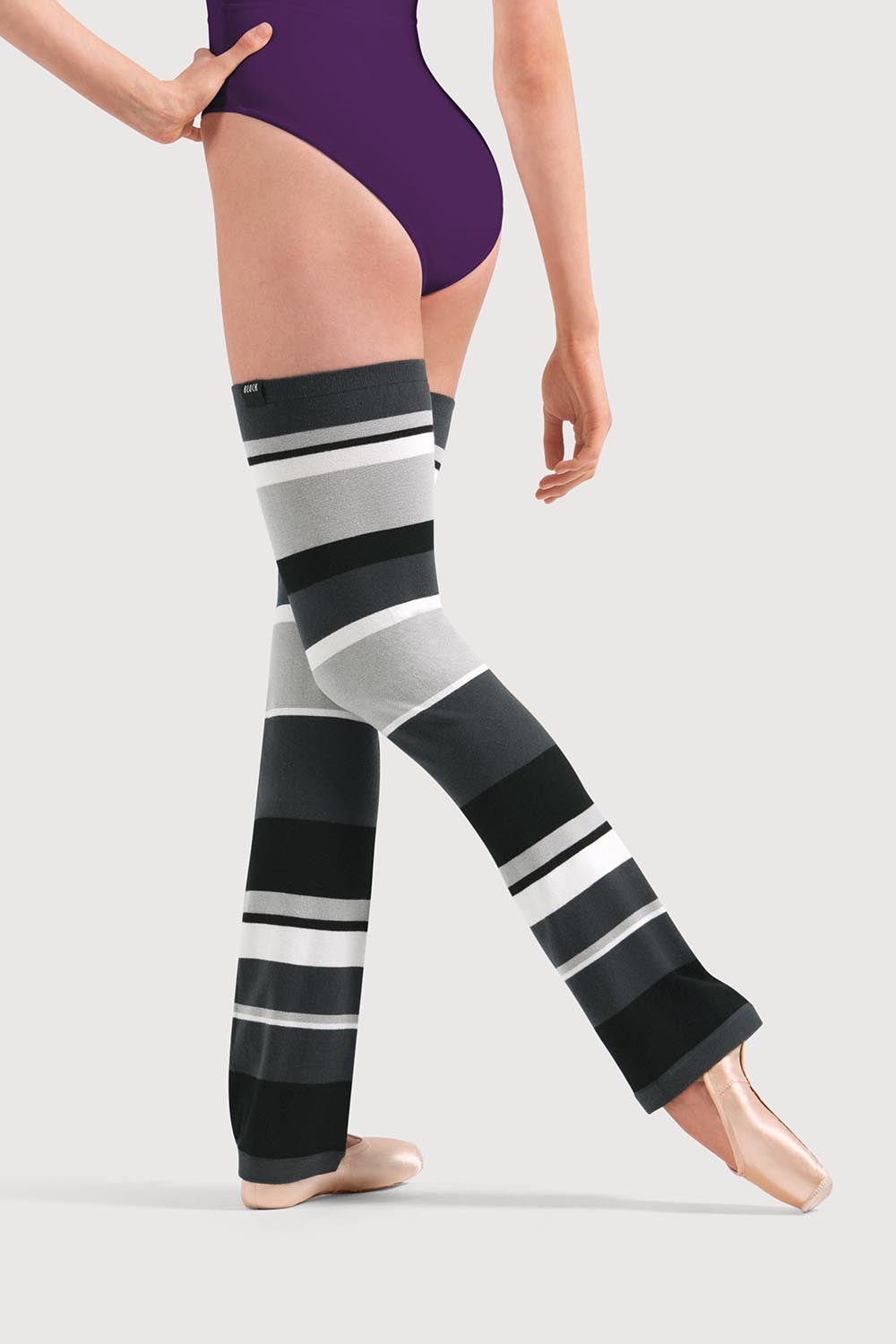 Add a pop of colour to your warm-up routine with these thigh-high striped legwarmers. Designed in a flattering bootcut shape, they’re perfect for layering over your dancewear before class or keeping muscles warm during barre work. The bold stripe block design brings a fun, fashion-forward edge to your studio look, where style meets performance.