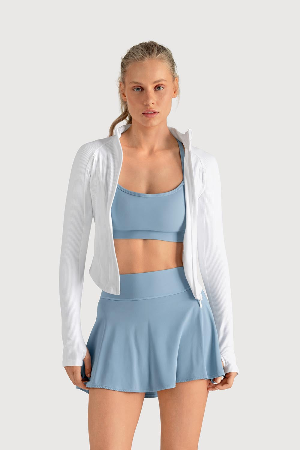 The Rib Performance Jacket takes everything you love about our best-selling Contour Jacket and reimagines it in a luxe rib fabrication. Engineered with a zip-through funnel neck, sculpting contour seams, thumb holes for an active fit, and a feminine hi-lo hemline that flatters every silhouette. Built to perform, it’s the layer you’ll reach for before and after every workout, and everywhere in between.