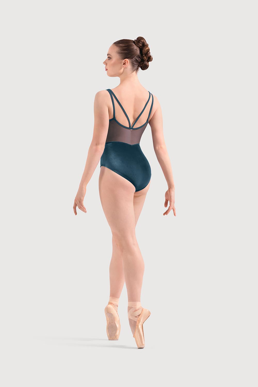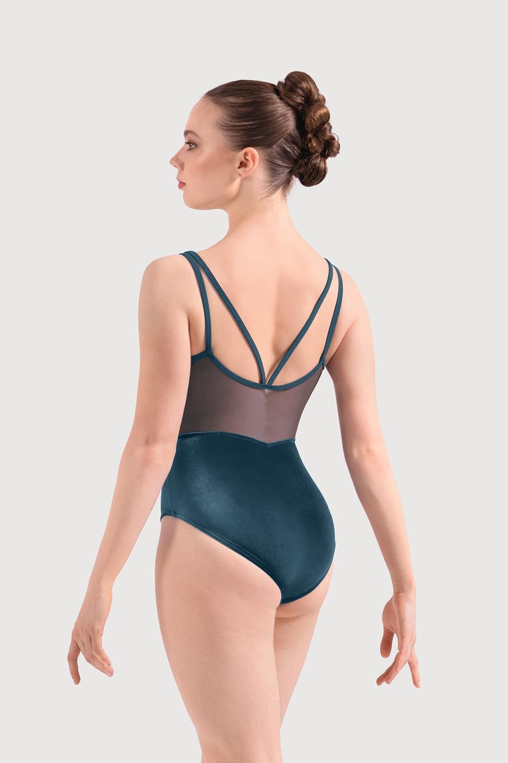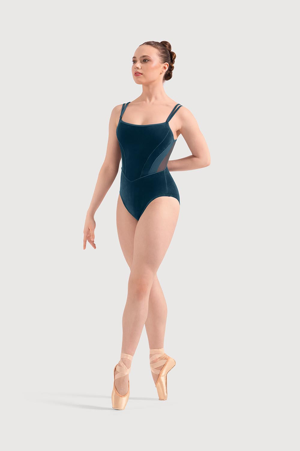 The Marisse Leotard brings a touch of mystery with its double camisole straps and scoop neckline. The velvet bodice, paired with sheer mesh panelling, shapes and highlights the silhouette. The scoop back with mesh details adds both elegance and breathability. Fully front lined with a high-cut leg, the Marisse Leotard offers a fit that enhances your lines and makes a statement.