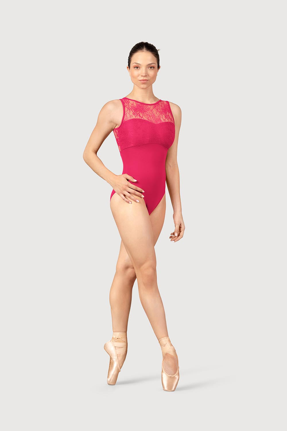 This elegant tank leotard blends a sweetheart-shaped bust with delicate lace that sweeps across the neckline into a graceful scoop. The lace continues through to the scoop back, adding breathability while maintaining a refined silhouette. Offering both coverage and gentle support, it’s a timeless choice for dancers who want elegance without compromise.