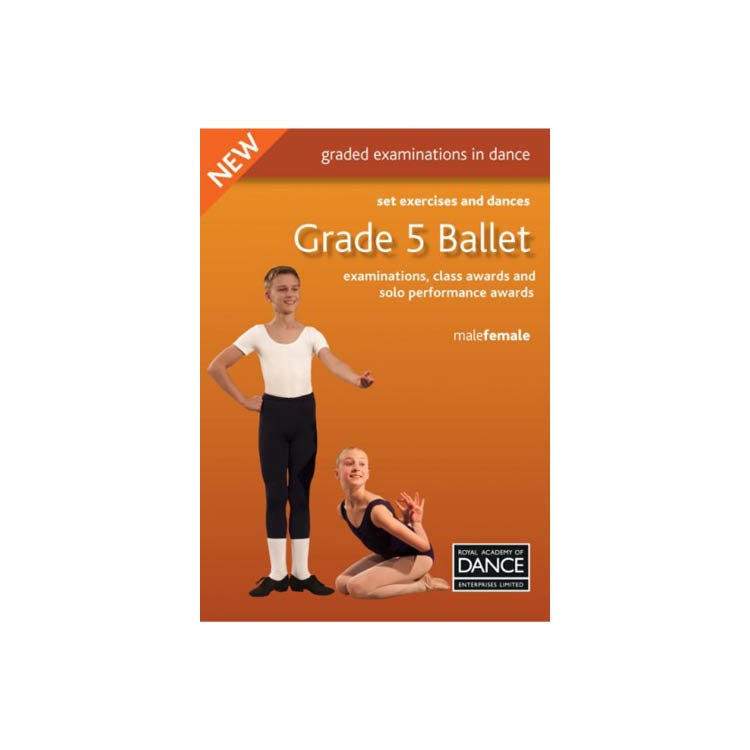 Syllabus book for graded examinations in dance set exercises and dances for Grade 5 ballet. Examinations, class awards and solo performance awards for male and female syllabus.