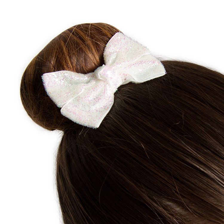 This funky hair accessory features a double glitter bow on an easy to open clip which allows you to slide the bow into the hair and fasten with ease. The bow measures to approximately 7.5cm and looks stunning above a pony tail or a bun. Available in an array of bright and beautiful colours, the perfect addition for any outfit for dance or gymnastics.