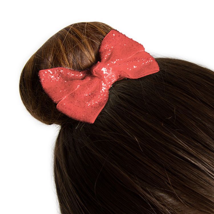 This funky hair accessory features a double glitter bow on an easy to open clip which allows you to slide the bow into the hair and fasten with ease. The bow measures to approximately 7.5cm and looks stunning above a pony tail or a bun. Available in an array of bright and beautiful colours, the perfect addition for any outfit for dance or gymnastics.