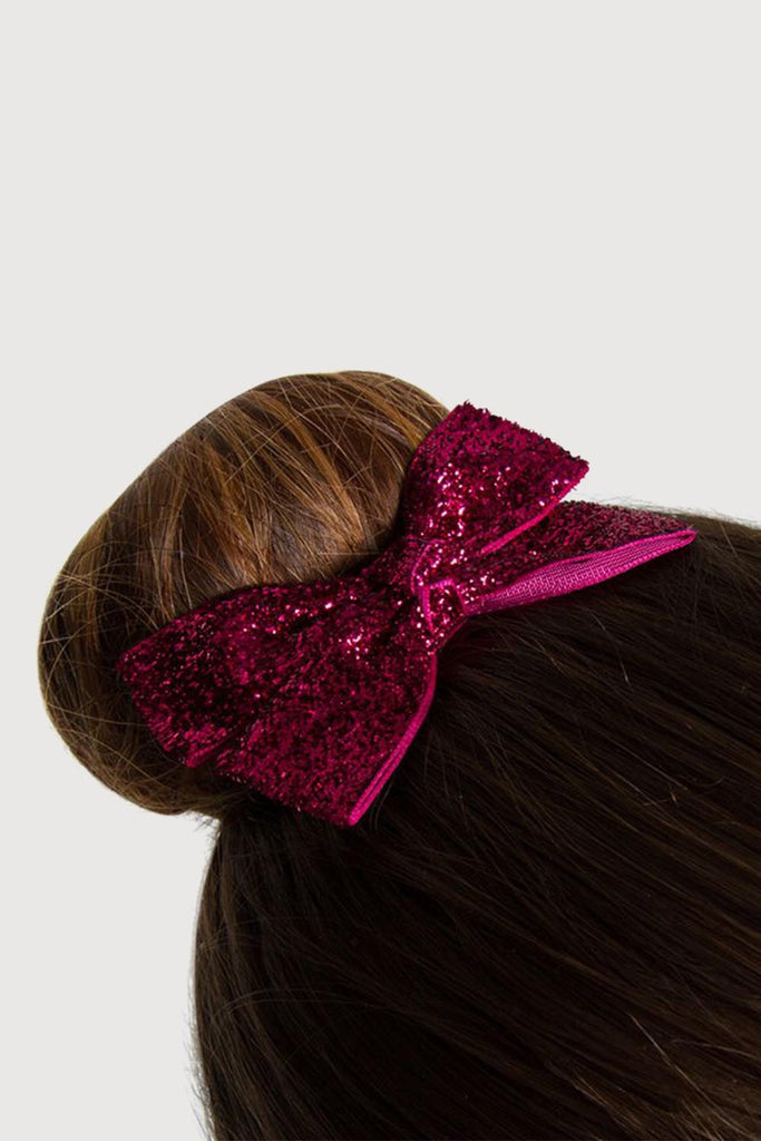 This funky hair accessory features a double glitter bow on an easy to open clip which allows you to slide the bow into the hair and fasten with ease. The bow measures to approximately 7.5cm and looks stunning above a pony tail or a bun. Available in an array of bright and beautiful colours, the perfect addition for any outfit for dance or gymnastics.