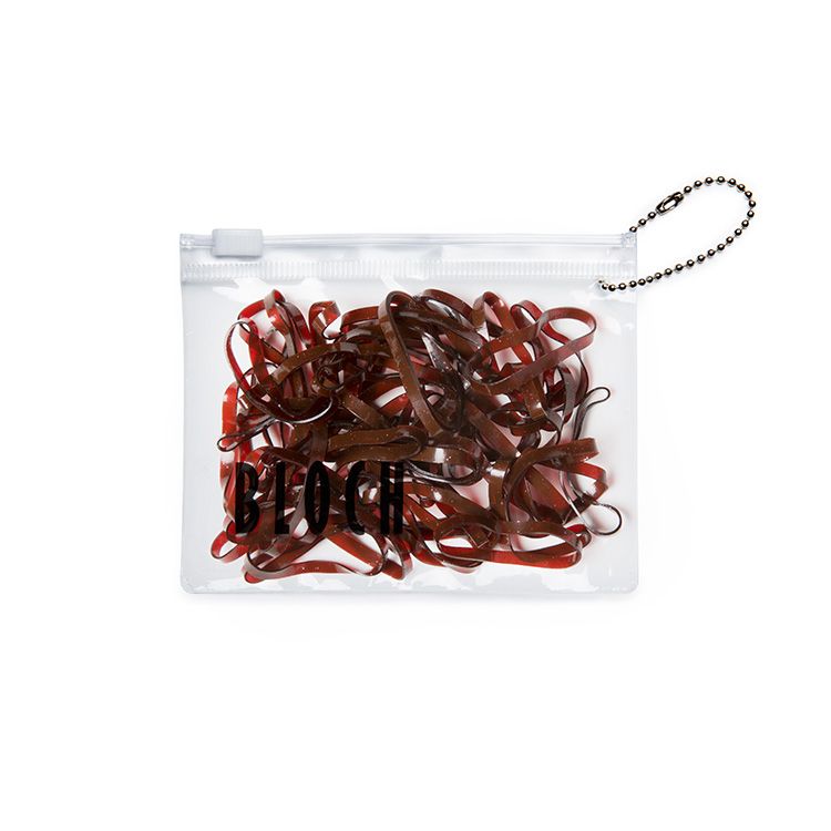 This travel zipper pouch contains fifty thin gel elastics, transparent for an invisible wear ideal for securing hair back and out of the face for competitions and performances.