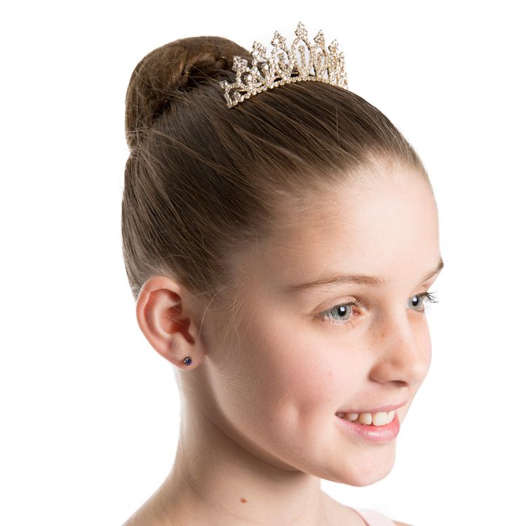 Our Giselle tiara is fit for a princess, dripping in sparkling rhinestones featured in a curved arch motif. The tiara is attached to a gold hair comb for easy wear which can slide easily into the hair above the bun. We recommend spraying hair spray before securing the headpiece, this will prevent the rhinestones from losing their brilliant sparkle.