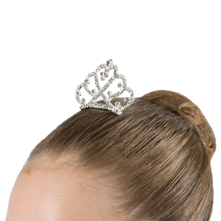 The Sophia tiara is beautifully encrusted with silver sparkling rhinestones featured in a heart motif. Fit for a princess, the tiara is attached to a small hair comb which can slide easily into the hair and frames the top of the bun. We recommend spraying hair spray before securing the headpiece, this will prevent the rhinestones from losing their brilliant sparkle.