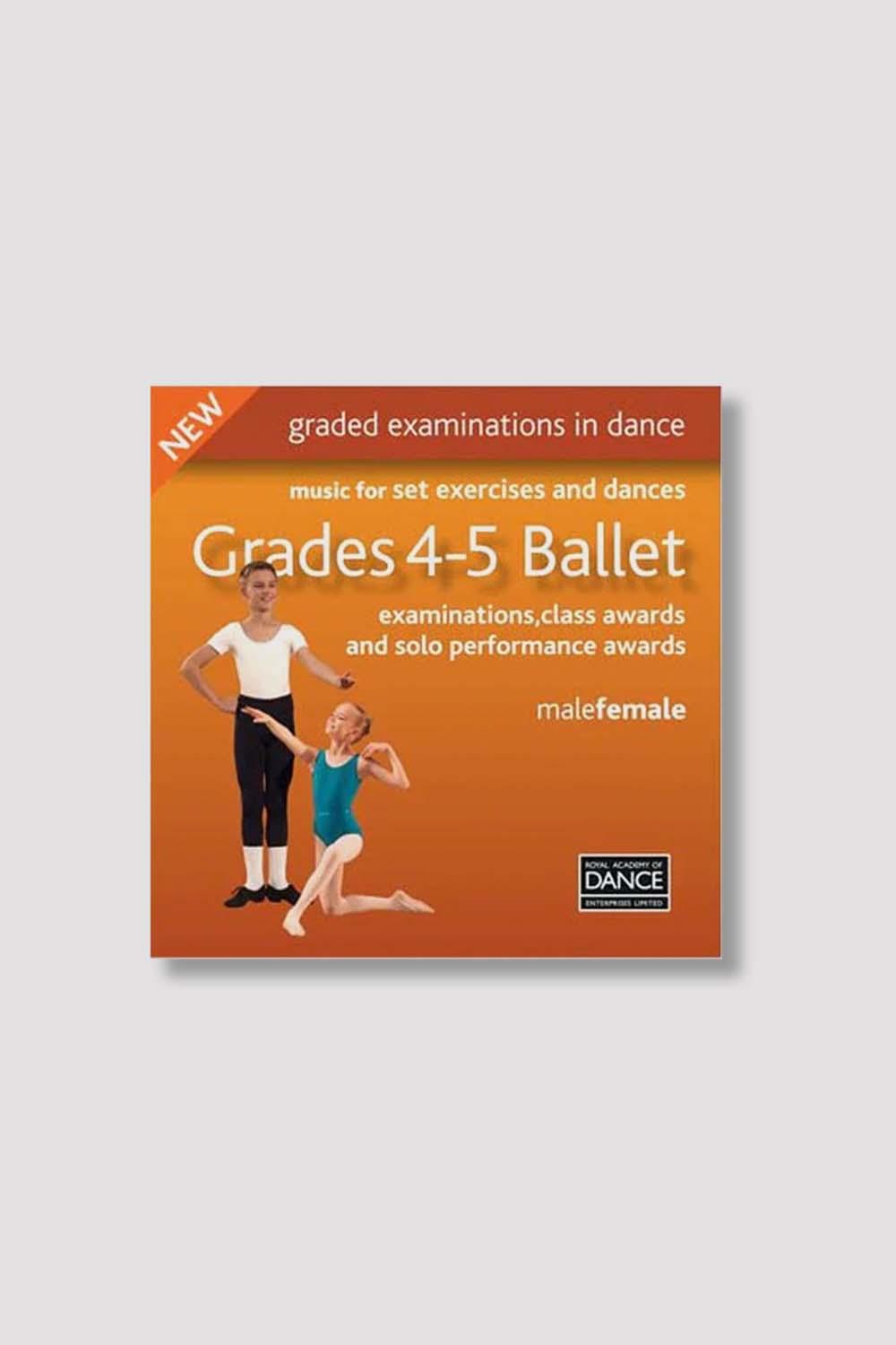 CD graded examinations in dance, music for set exercises and dances for Grades 4-5 ballet. Examinations, class awards and solo performance awards male and female syllabus.