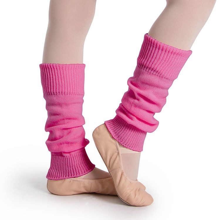 Our basic children's knee-length ankle warmer in soft acrylic knit is an essential item for warm-up and stretch class. The top of the ankle warmer can be folded down for the desired length and the rib cuff detail is the perfect finish.