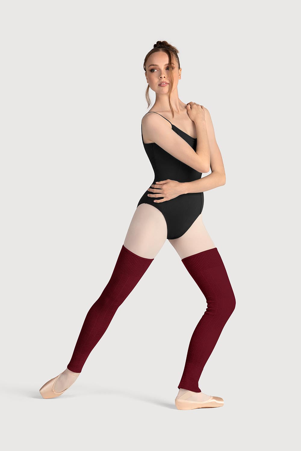 A thigh-high legwarmer that can be worn full length or scrunched to the desired length, suitable for an initial warm-up and class wear. Rib cuff detail around the thigh and ankle for a soft and comfortable fit.