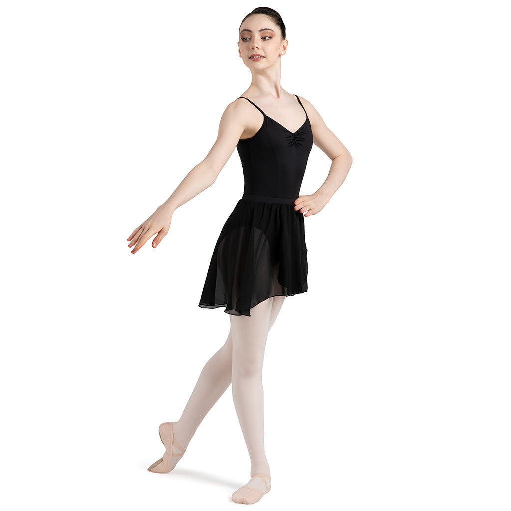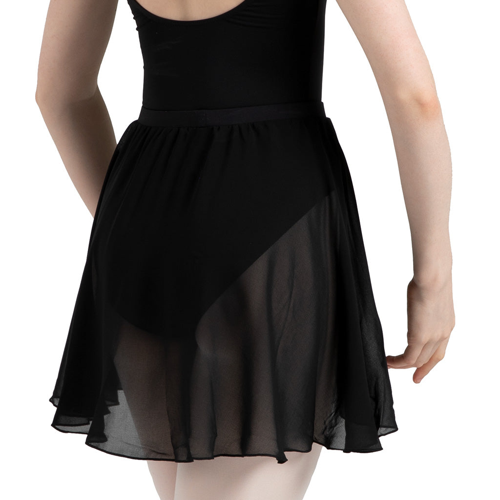 The Chezanne is a classical style skirt featuring a full circle design and mock wrap front. Crafted on an elasticated waistband for easy wear, with luxuriously soft chiffon that falls to the upper thigh.