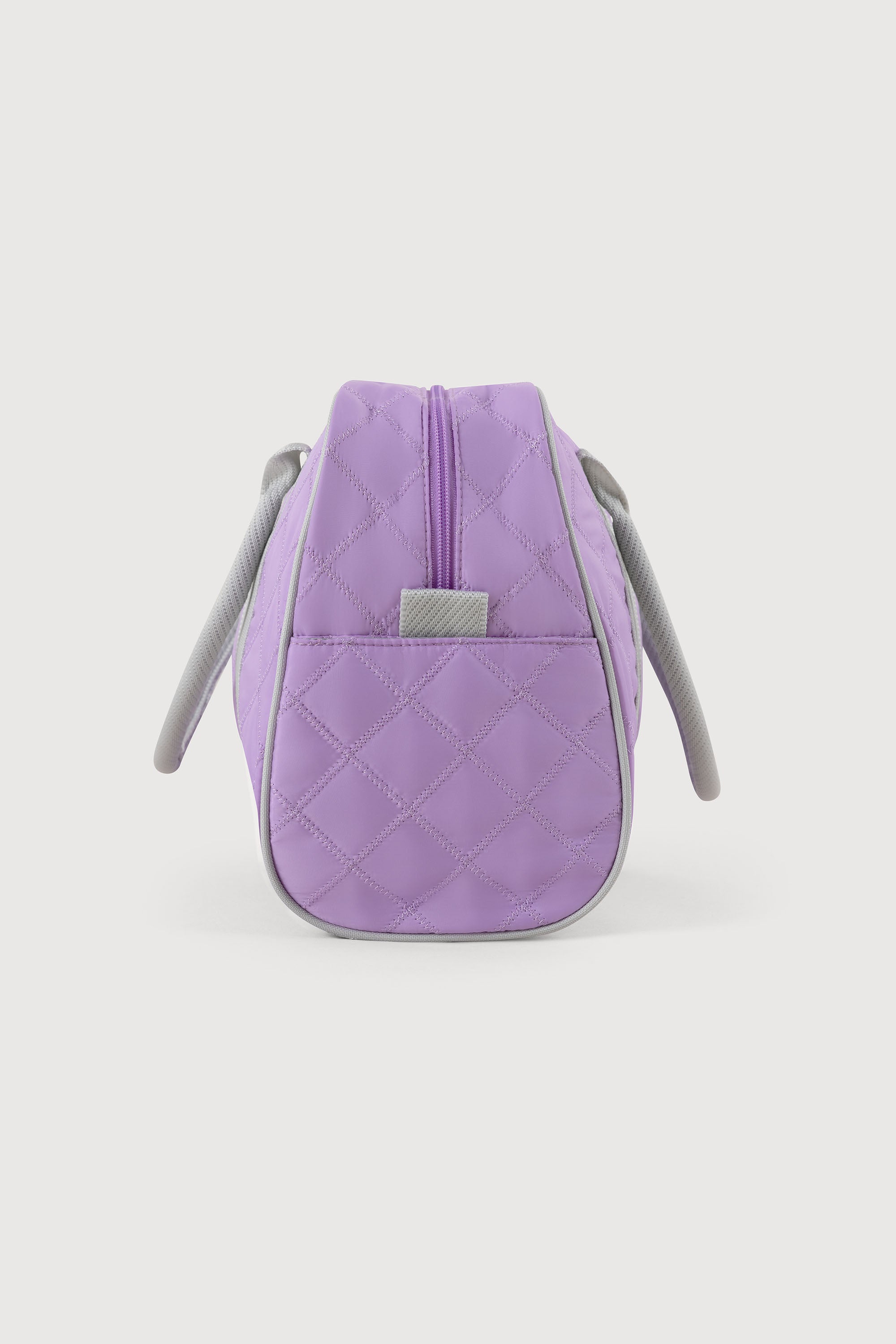 A lightweight and luxe bag, the Quilted Encore is designed for juniors or those wanting a convenient, everyday go-to bag. Featuring a diamond body motif with contrasting dual hand-held straps for over-the-shoulder wear. A functional top-line zip opens to the main compartment, with an internal zip section for storing any smaller accessories. A script Bloch logo in contrasting embroidery matches the straps and handles.