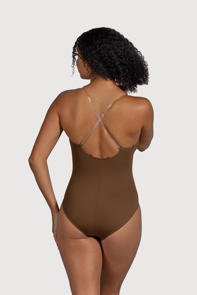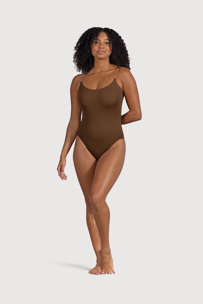 The Estrella Body Liner is a versatile undergarment for both costuming and performance wear. The classic scoop neckline front and back is a timeless silhouette and ideal for pairing underneath most costumes, with adjustable straps in a clear and tonal option and seven possible strap positions for a superior and customisable fit. The Estrella Body Liner has a full seated pant and high legline, with modesty and comfort in mind.