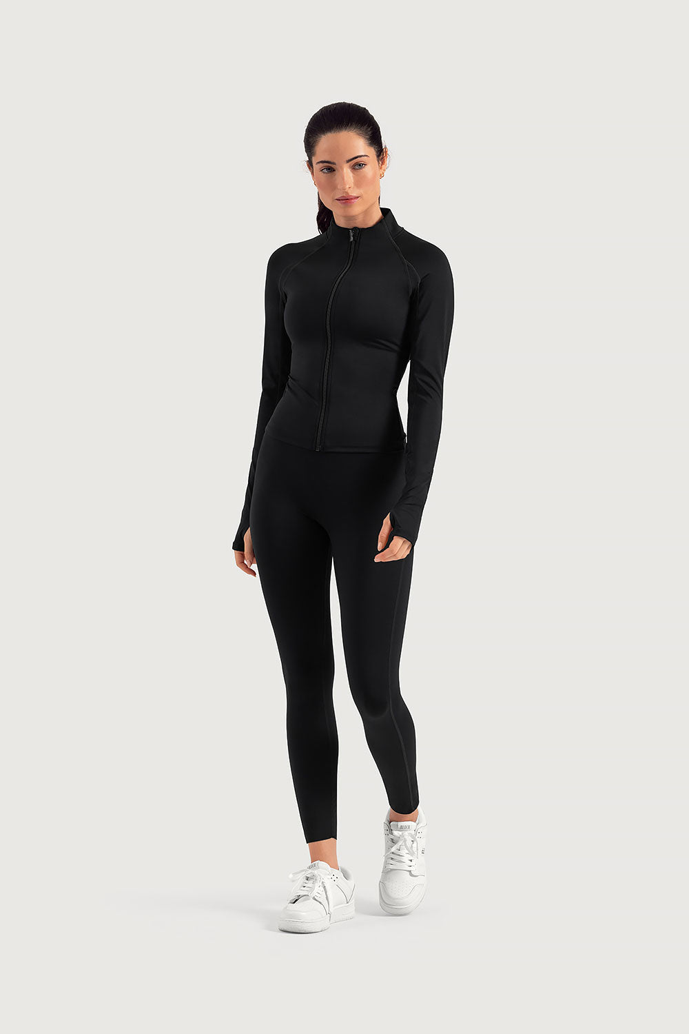 Meet the Sculpt Jacket , serving sharp lines, bold colour and a sleek, body-skimming fit made for active days. The funnel neck and zip-through front keep you snug, while overlock stitching and thumbholes elevate both comfort and style. Whether you're warming up or heading out, this jacket adds a polished, athletic finish to your look.