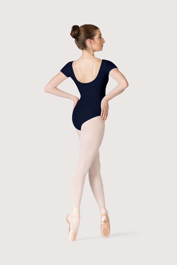 Introducing the Olisia from the Overture Collection, a classical style leotard with a fitted cap sleeve provides light coverage across the upper arms which is ideal for cooler weather or a dancer looking for a more mature style. A simple scoop neck front and back is a simplistic and traditional line, high enough to allow for an undergarment if necessary.