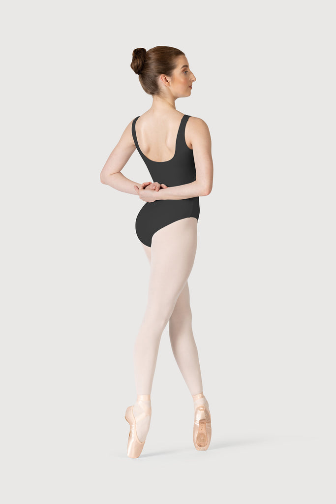 Introducing the Odetta from the Overture Collection, a traditional classical style leotard with a regular wide strap for firmness and support through the line of the shoulder. A unique quadruple front pleat gives a beautiful V line which sits flat to the chest without bulk. This garment comes fully front lined for a smooth and flattering fit, with a simple scoop back that is high enough to allow for an undergarment.