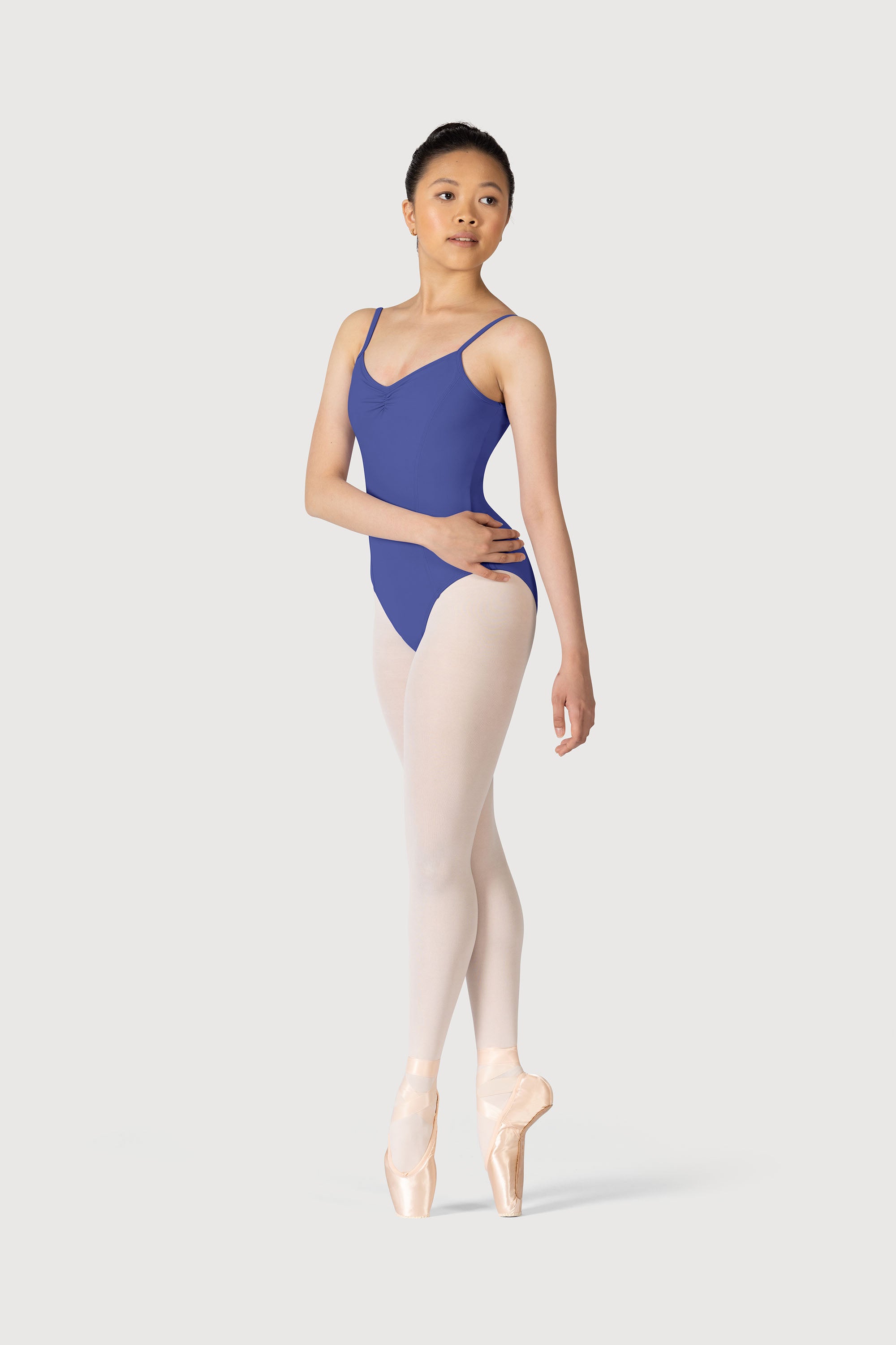 Introducing the Oriana leotard from the Overture Collection, a classical style leotard with a thin camisole strap which is continuous for a smooth and seamless fit around the arm. A front V neckline is shaped with a gathered front, paired with a French princess bodice line for a flattering silhouette.