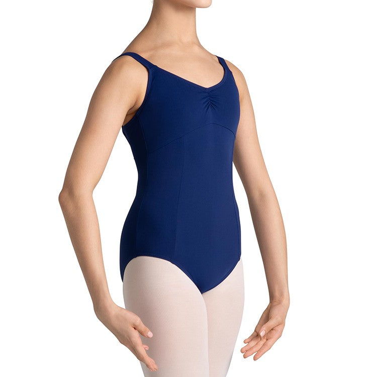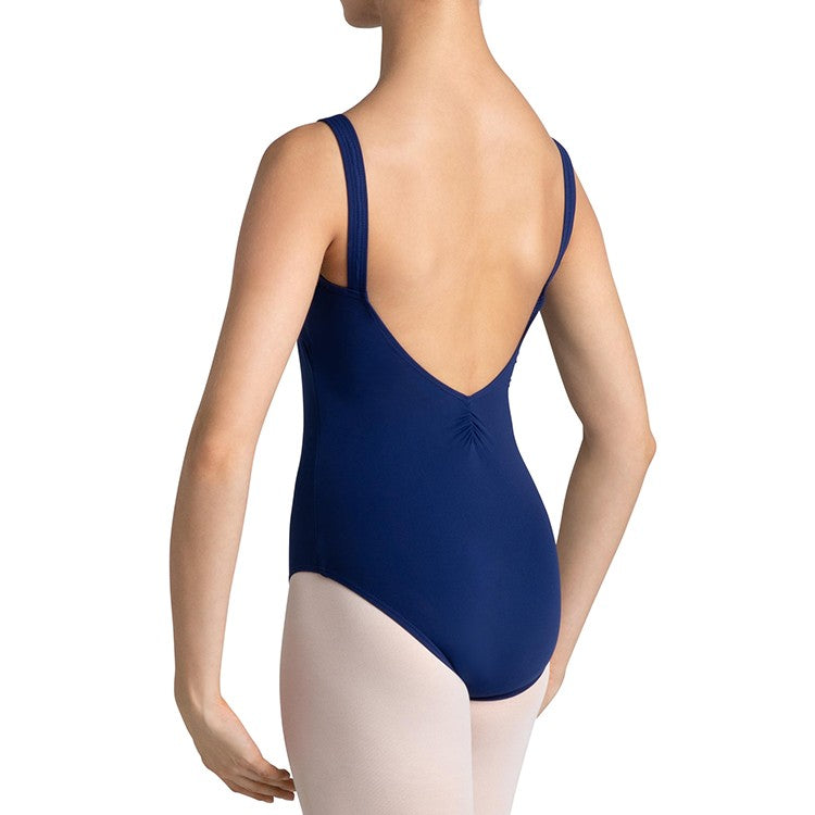 A classical style leotard that is suitable for both class and examination wear, the Imperial Paradise leotard has a tapered strap which sits firmly whilst offering support through the line of the shoulder. A gathered front and back neckline creates a flattering shape to the garment, paired with an empire line and princess bodice seams for a flattering and streamline fit. This leotard has lining across the shelf for a smooth and modest wear. A luxurious Poliammide Micro/Elastan blend is beautifully soft for next to skin wear.