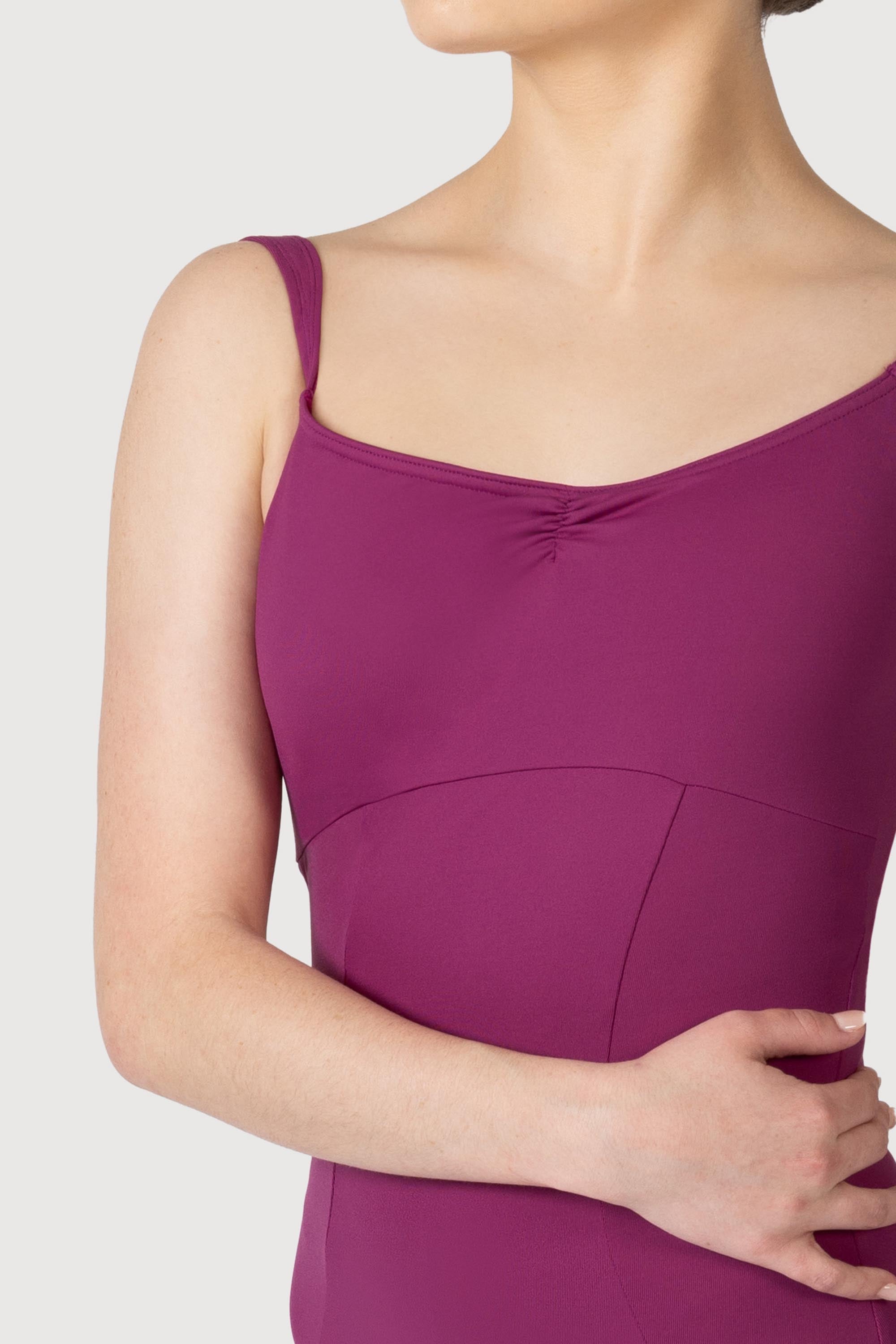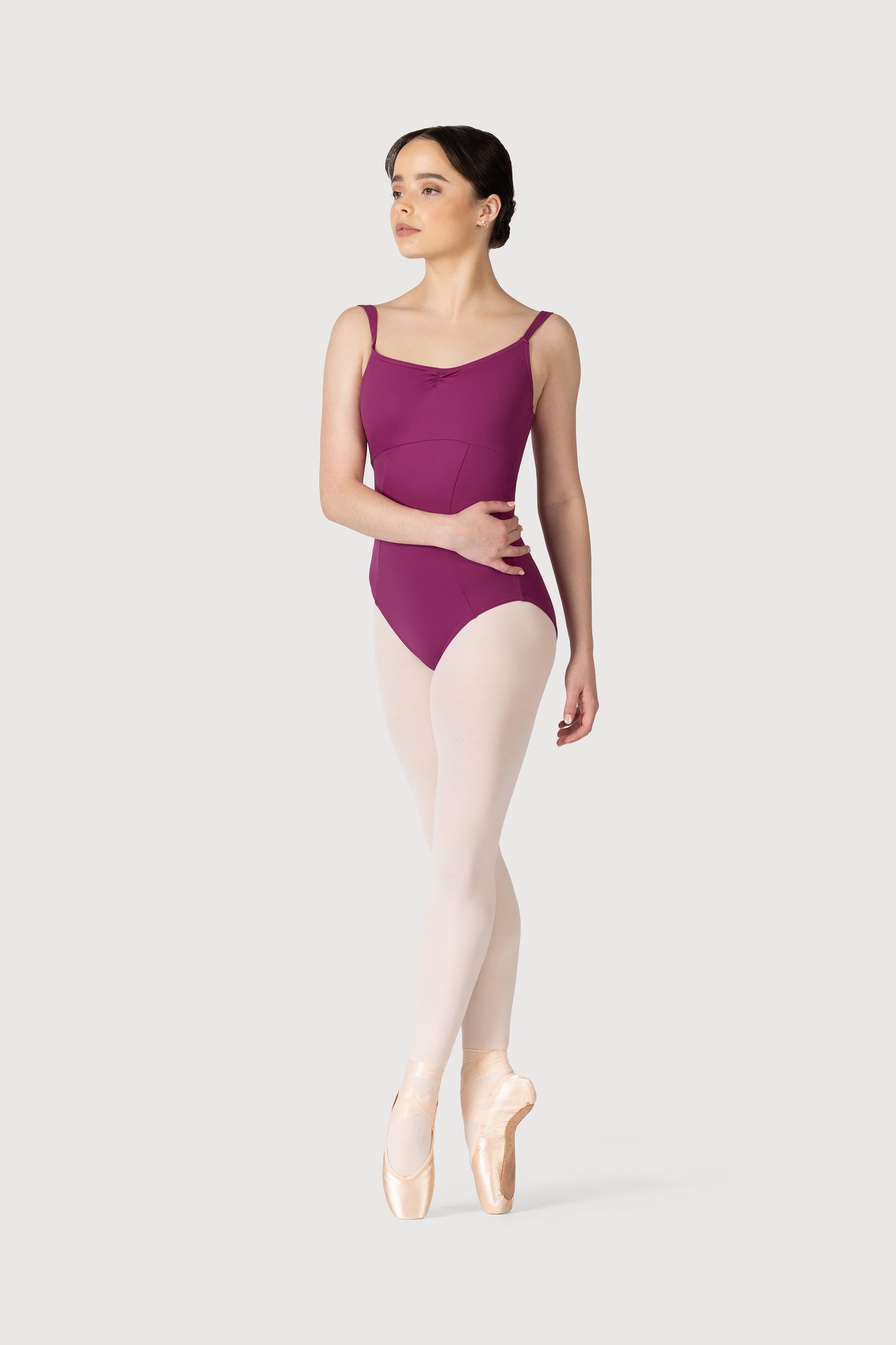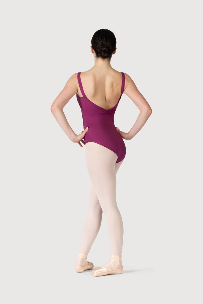 This classic style leotard features a flattering empire bodice with princess seams and gathered front and back.