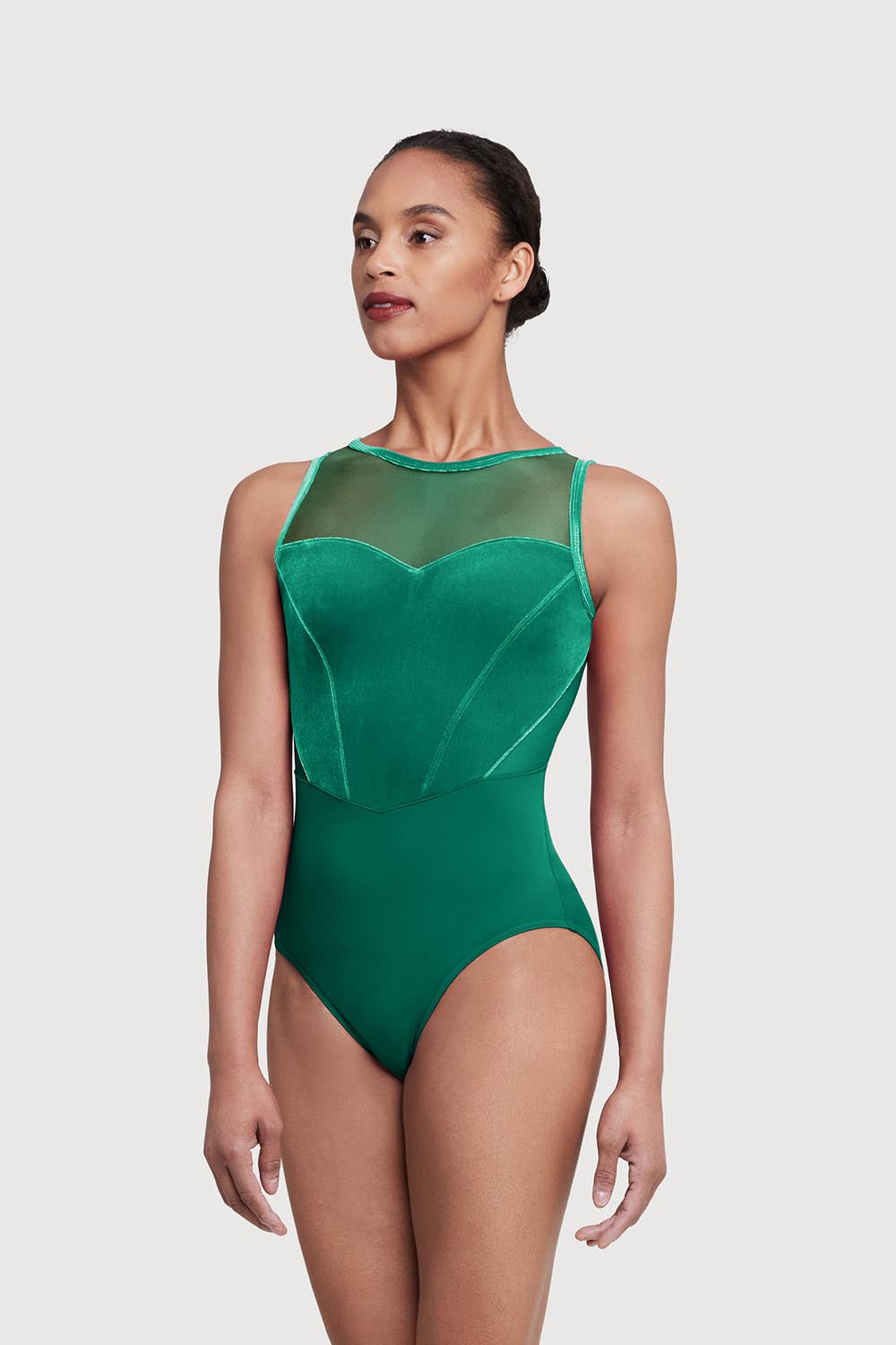 The Sofia Leotard brings a touch of luxury and style to any dancer's wardrobe. With a velvet bodice and sheer mesh neckline, it offers a breathable and comfortable fit while looking effortlessly chic. The sweetheart bust and bow back add a sweet, sophisticated detail, making this leotard a standout piece for both practice and performance.