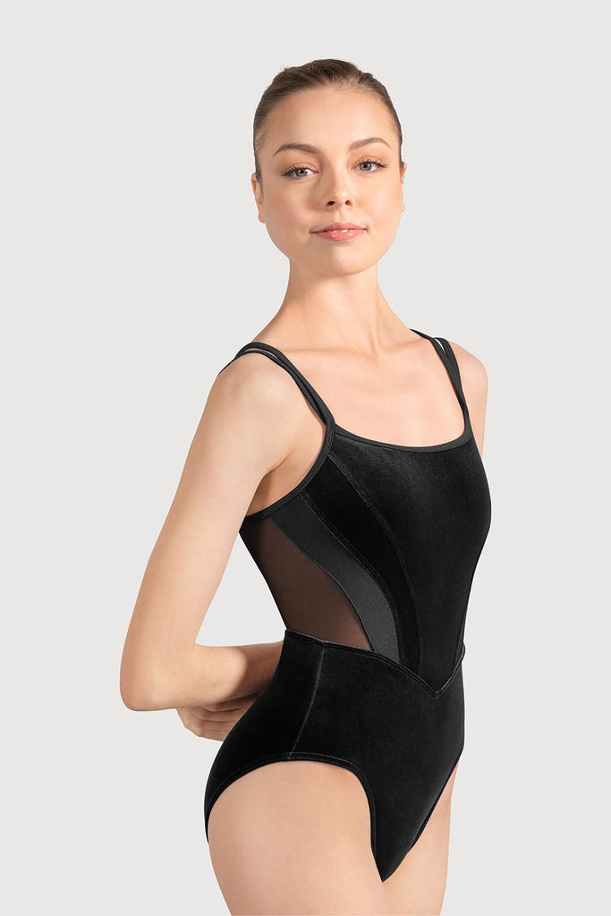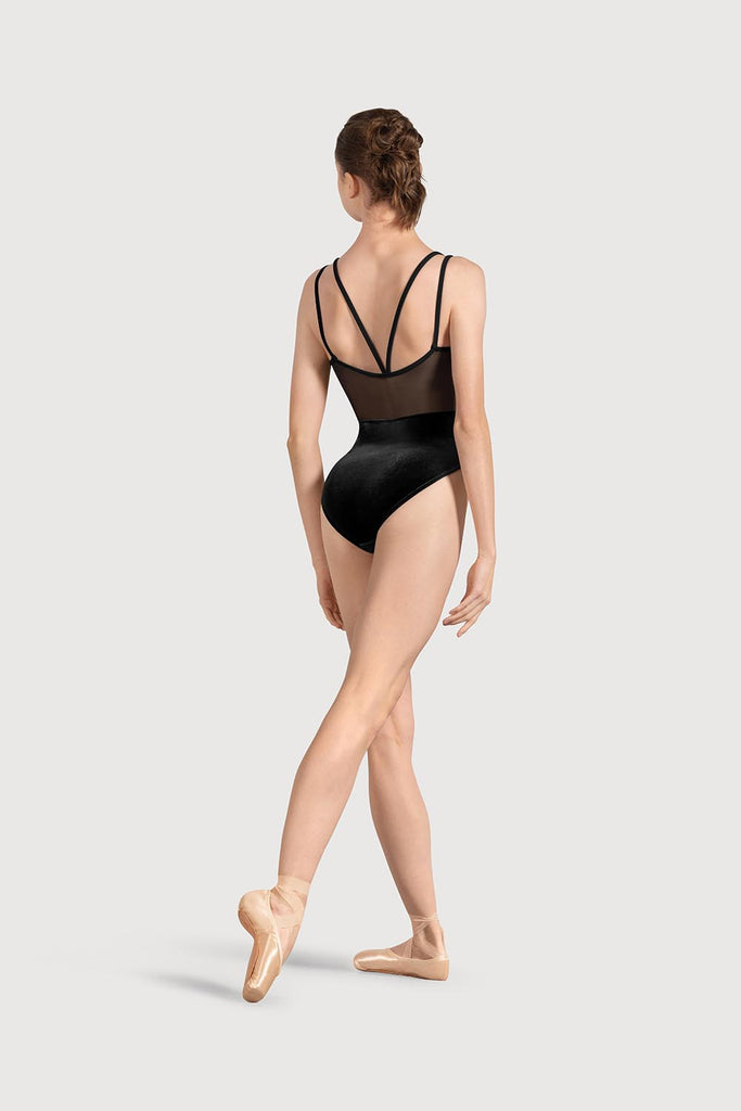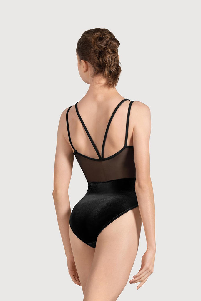The Marisse Leotard brings a touch of mystery with its double camisole straps and scoop neckline. The velvet bodice, paired with sheer mesh panelling, shapes and highlights the silhouette. The scoop back with mesh details adds both elegance and breathability. Fully front lined with a high-cut leg, the Marisse Leotard offers a fit that enhances your lines and makes a statement.