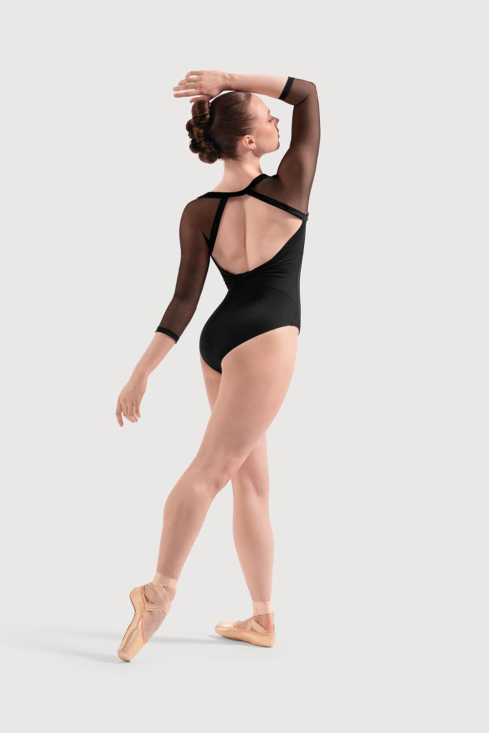 Captivate in the studio and on stage with the spellbinding Mamselle Leotard. The 3/4 mesh sleeves add sophistication, complementing the straight neckline with luxurious velvet trim. The look is enhanced with an exquisite open-back detail, accentuating your lines and silhouette. Fully front lined with a high-cut leg, the Mamselle Leotard ensures a flattering and superior fit.