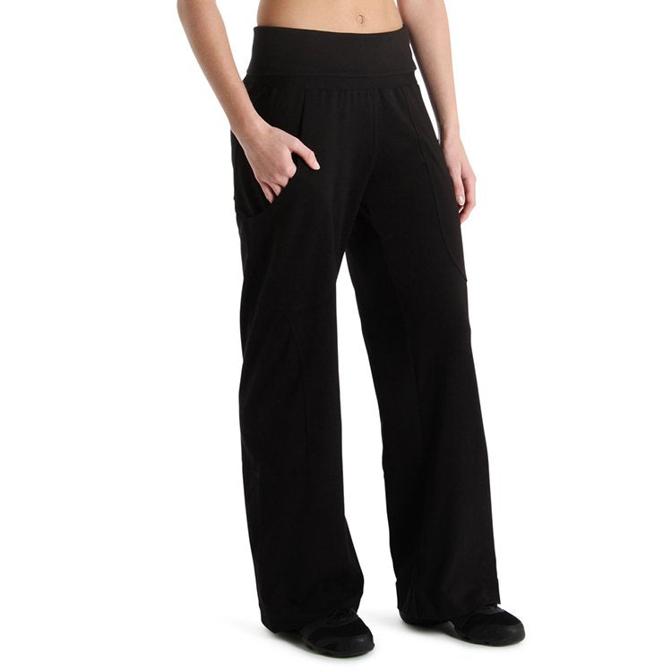 This full-length pant features a loose-fitting leg with back pockets and a roll down waist for a comfortable and relaxed fit. Crafted in a blend of cotton (90%) and spandex (10%) for better air circulation which helps remove and absorb body moisture keeping you dry and comfortable during extended class and workouts. A versatile design ideal for a number of dance genres like jazz, tap, hip-hop and funk as well as fitness and studio activities.
