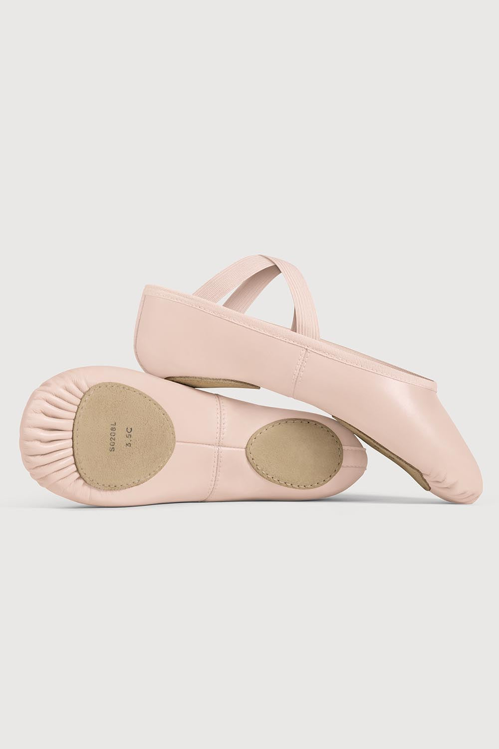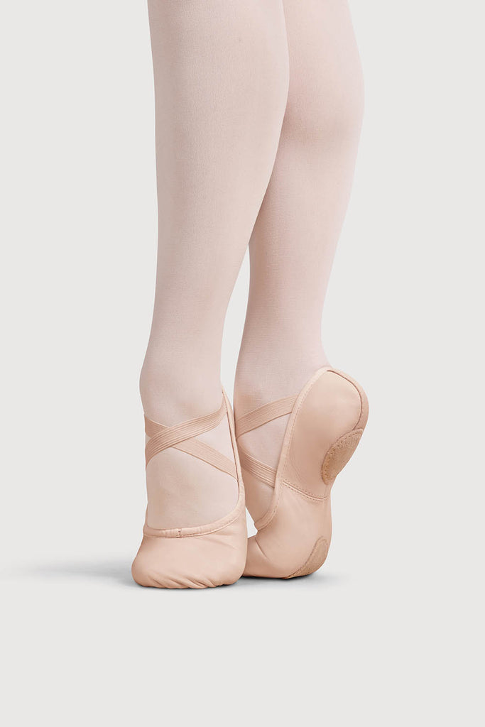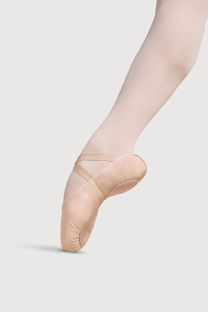This split sole ballet shoe with tapered toe uses a premium 'AAA' grade leather upper offering abrasive resistance, whilst a thin cotton drawstring adjusts the upper to the foot. An original T split-sole design with teardrop shaped outsole pads gives better foot articulation and movement. A cotton lining offers breathability and the soft thin suede sock adds additional comfort.