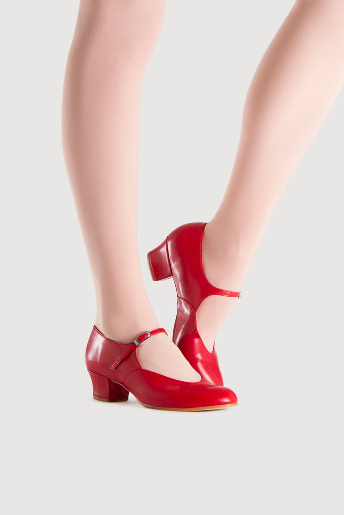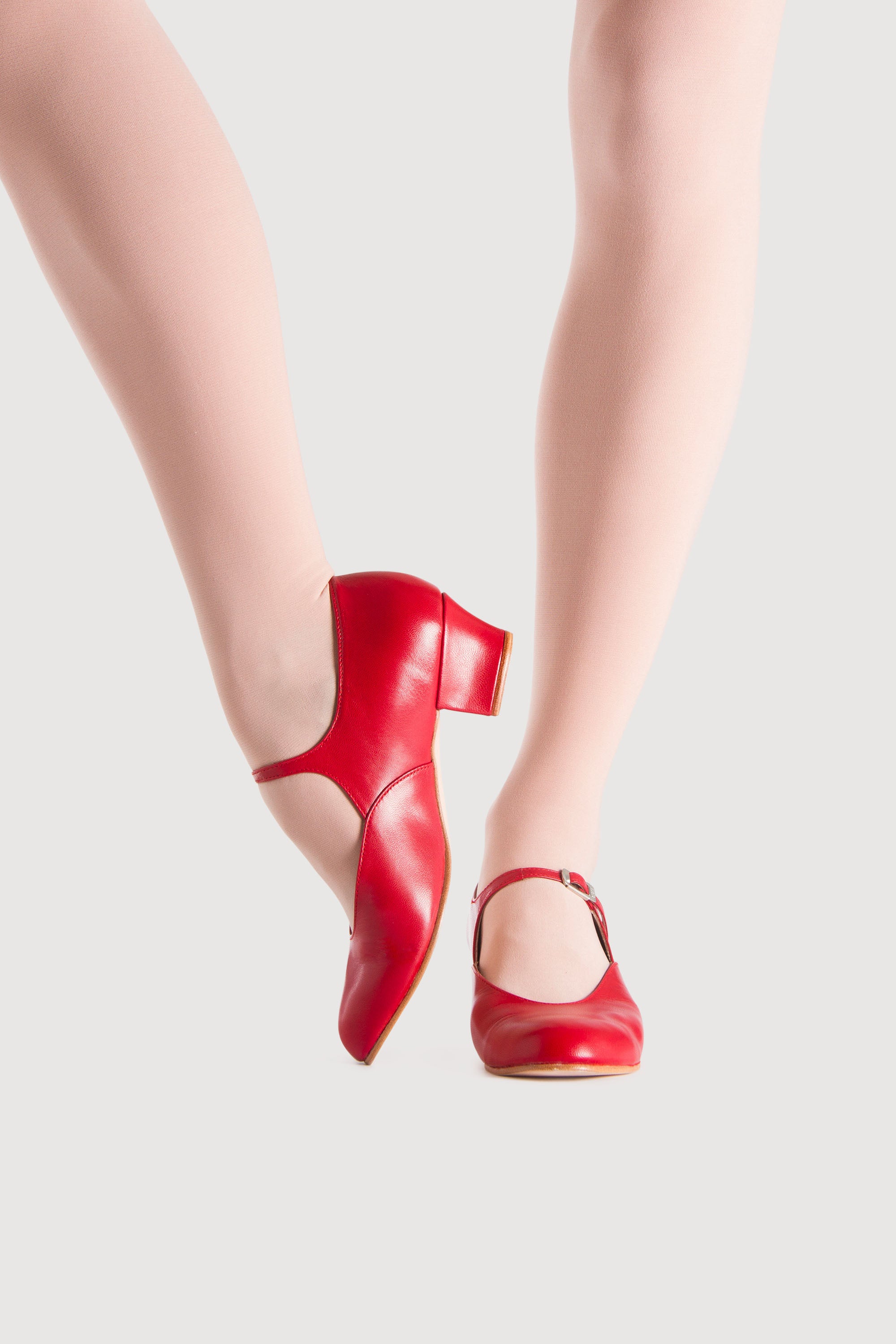 The Showstopper is a classic leather strap and buckle shoe. The full leather upper and sole combined with the 32mm (1.25") stacked wooden heel creates a dependable stage and tap shoe.