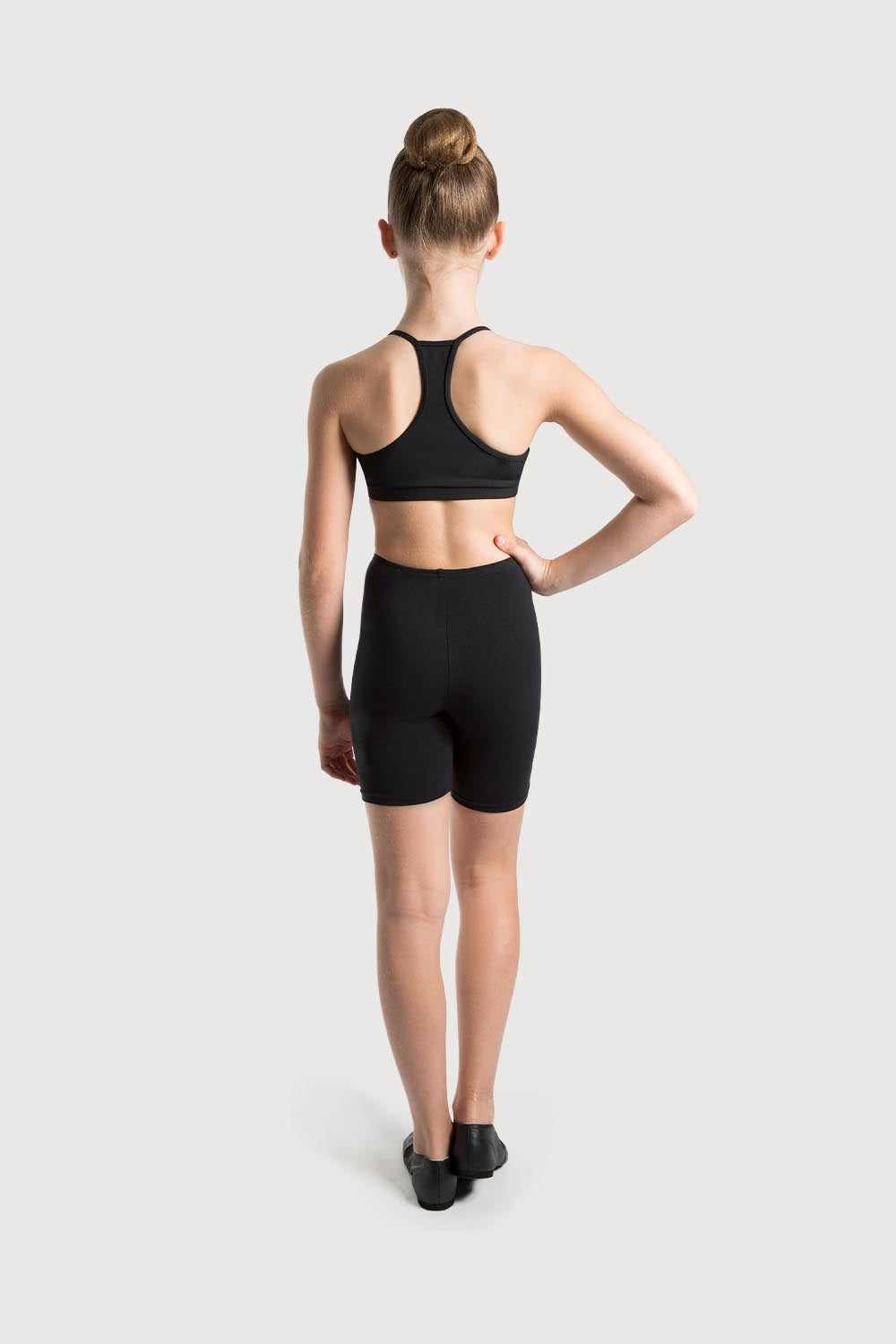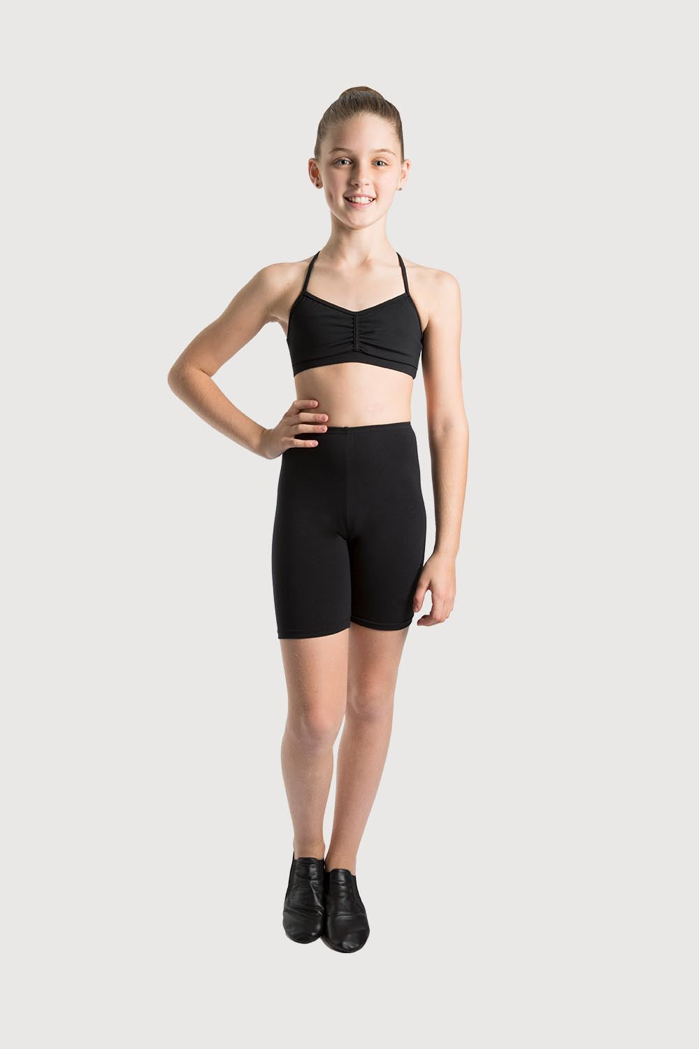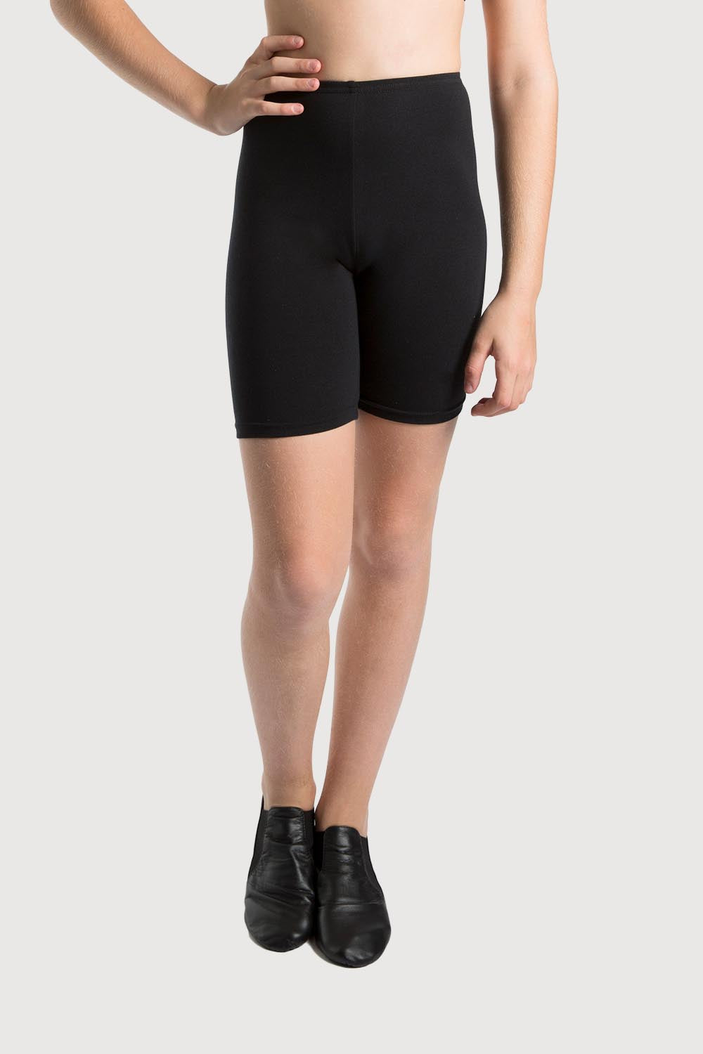 A basic fitted bike short with a high waist and narrow band, sits flat to the tummy with a length that finished just above the knee. A versatile design that is ideal for exam wear as well as a number of dance genres like ballet, jazz and studio activities. A blend of Poly/Cotton/Lycra makes this an easy wear garment with great comfort for next to skin wear.