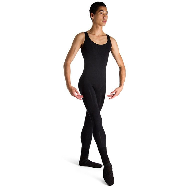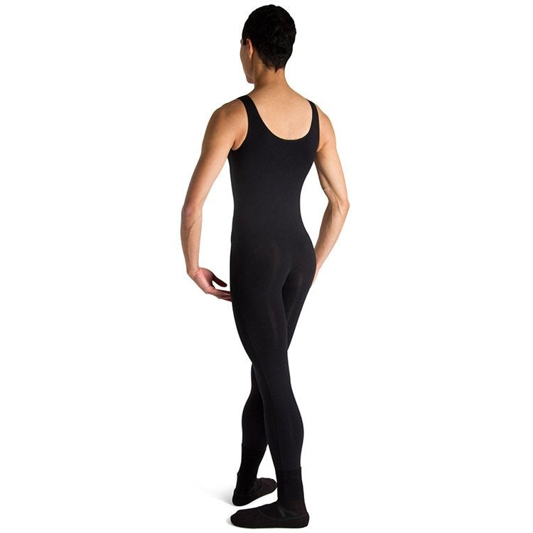 The Mark Unitard is a classical staple for male dancers, ideal for both class and examination wear. Designed with a scoop neckline and tank-style straps, it accentuates the masculine physique while providing a comfortable fit. The full-length leg finishes just above the ankle, allowing for a clean, streamlined look. Pair it with socks and ballet shoes for a traditional, polished appearance.