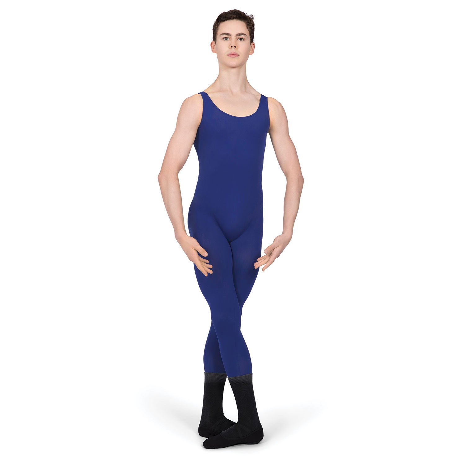 The Chad Unitard is designed to enhance the natural line and physique of the male dancer. Featuring a masculine scoop neckline at both the front and back, along with standard tank straps, it offers a clean and flattering look. The full-length leg is fitted throughout and finishes at the ankle, making it a versatile choice for both classical and contemporary dance styles.