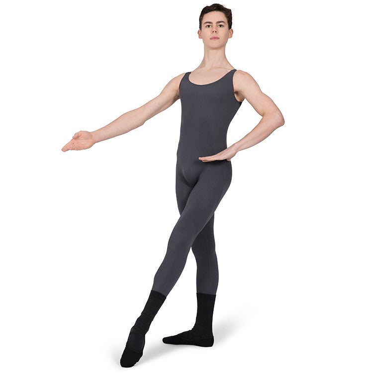 The Chad Unitard is designed to enhance the natural line and physique of the male dancer. Featuring a masculine scoop neckline at both the front and back, along with standard tank straps, it offers a clean and flattering look. The full-length leg is fitted throughout and finishes at the ankle, making it a versatile choice for both classical and contemporary dance styles.