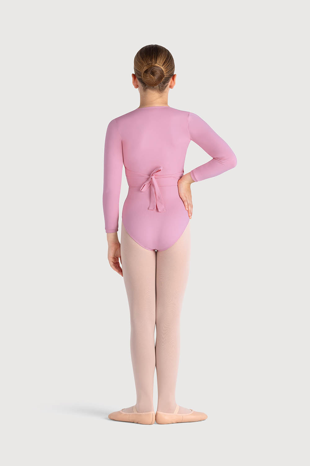 The perfect accompaniment to a ballet outfit is our crossover top, designed with a full length sleeve for added warmth and coverage during the cooler season. The top wraps around the bodice, with a keyhole loop on one side for the tie to be threaded through and easily fastened into a bow at the back.