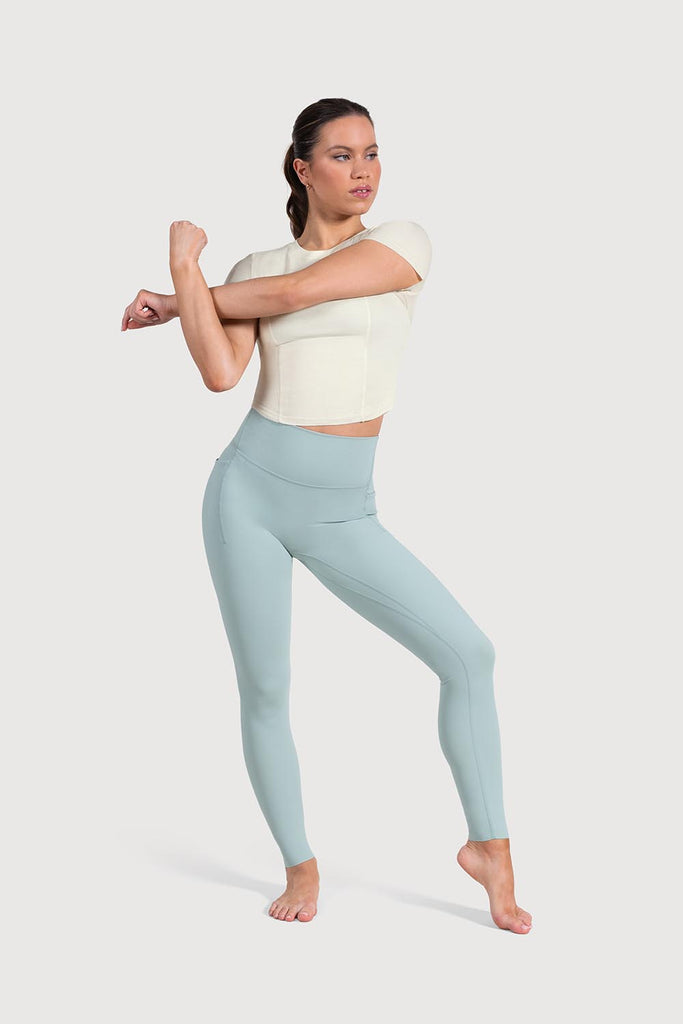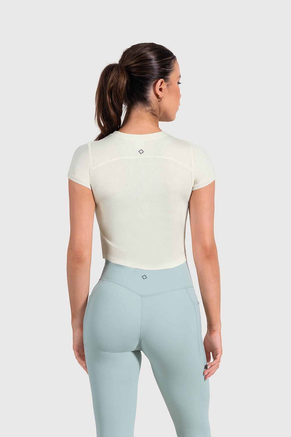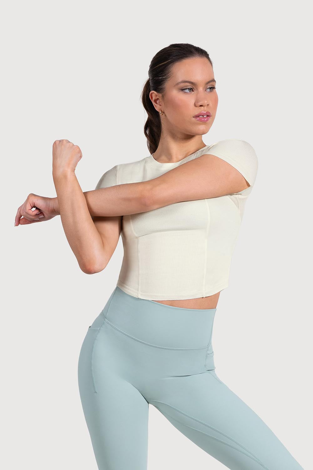 The Corset Top takes the comfort of a classic tee and elevates it with a contoured, corset-inspired design. Soft bodice seams and a shaped hemline define the silhouette, while short sleeves and a high scoop neckline keep it easy to wear. Made from buttery soft rib fabric with high stretch, it moves with you from couch to catch-ups - no outfit change required.