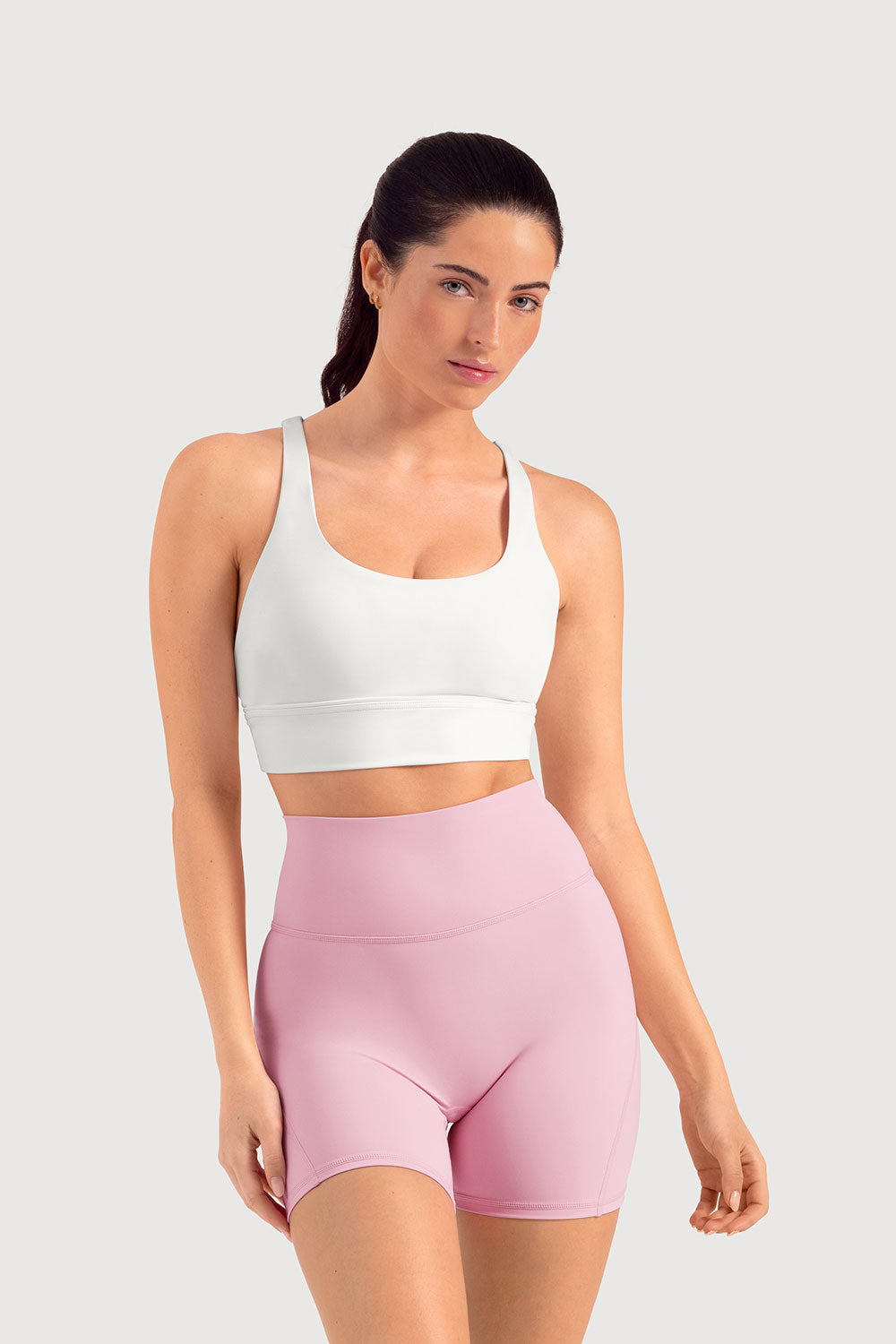 The Form Cross Back Bra Top brings fashion and performance together with its striking criss-cross back and sculpting fit. Soft, supportive lining with removable cups ensures all-day comfort, while the modern silhouette flatters from every angle. A must-have piece for mix-and-match moments.