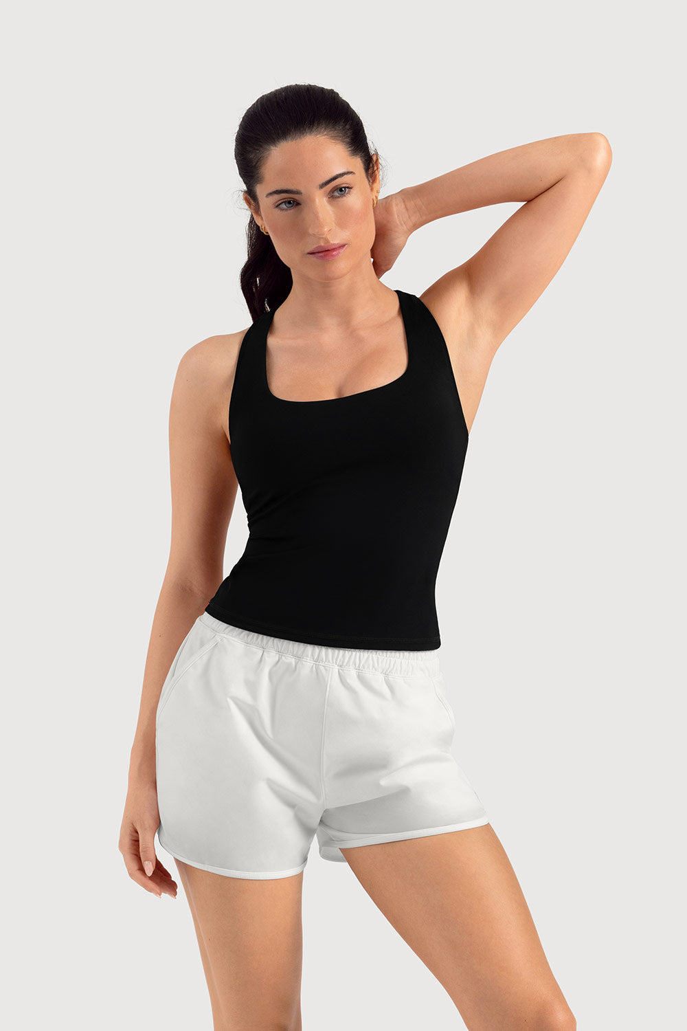 Designed for comfort and style, the Form Longline Tank features a supportive shelf lining and racer back for easy movement. Its high-stretch fabrication and standard length finish make it perfect for training, stretching or everyday wear. A clean, athletic essential with just the right amount of edge.